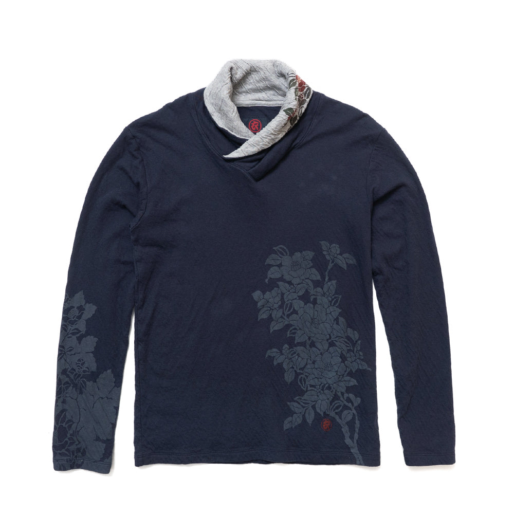 Dual-layered fabric Kimono collar T-shirt "Camellia"