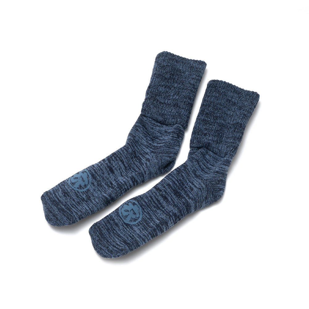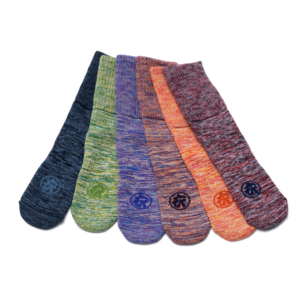 ムラ染めしたコットン100%の糸を使い、 肉厚で丈夫な靴下を作り続ける日本の靴下工場と出会った。