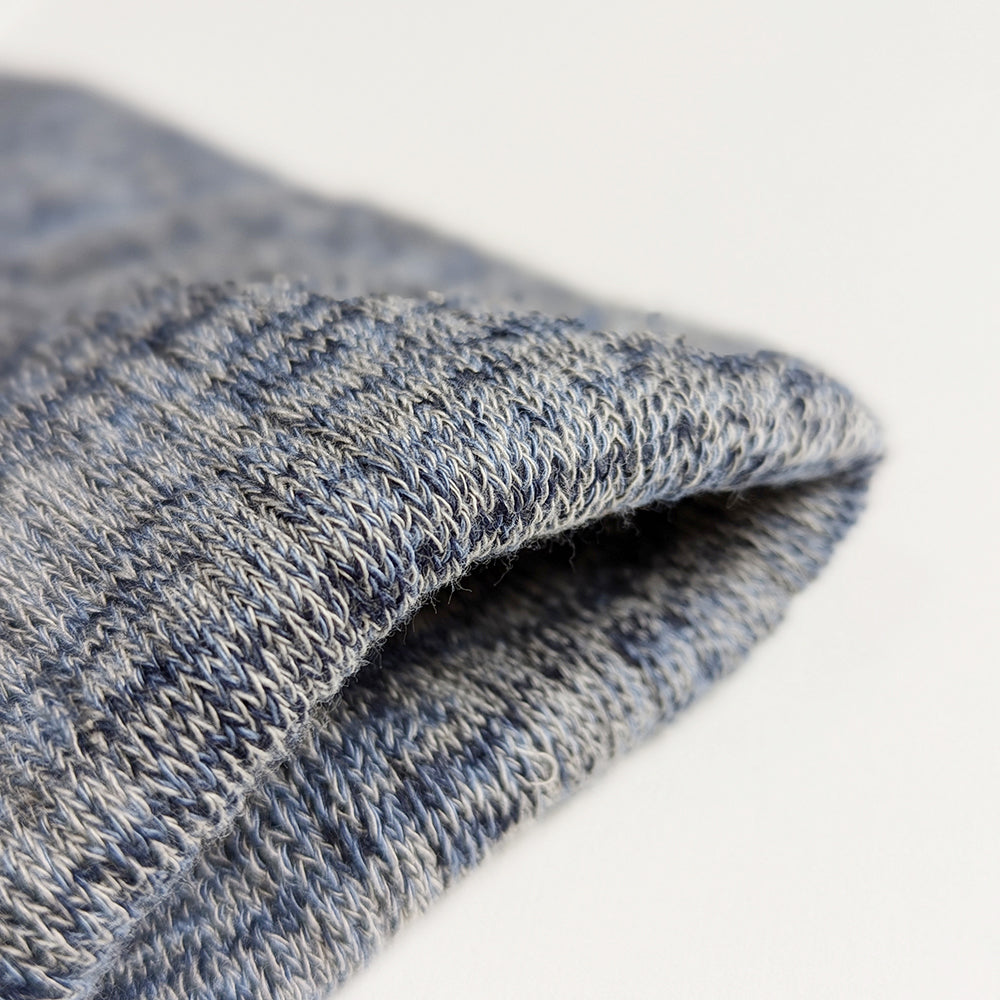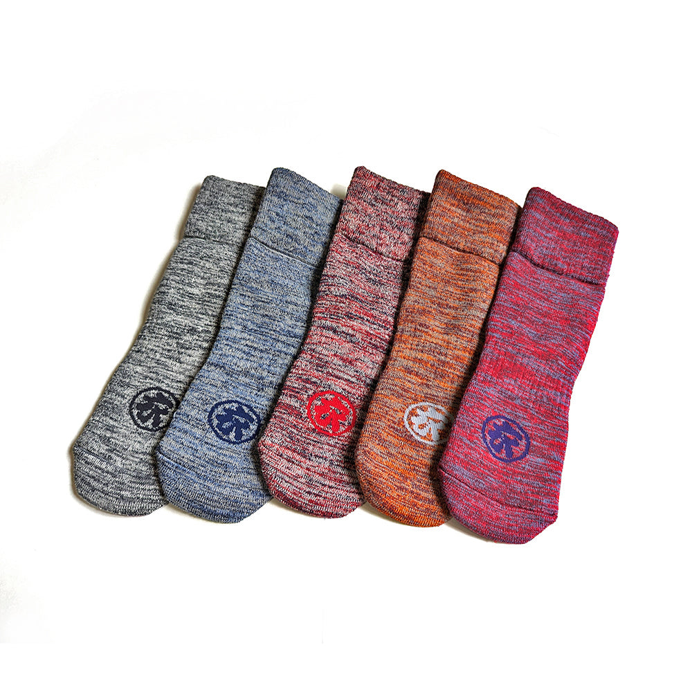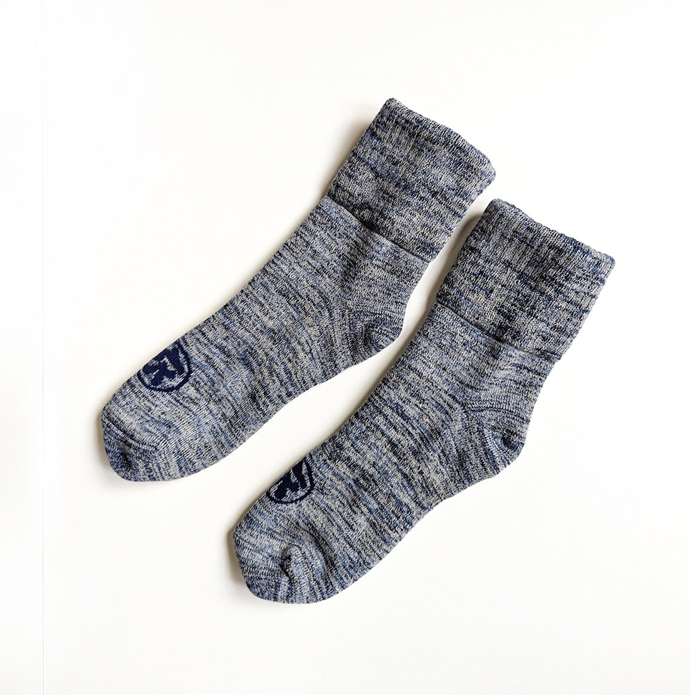 ムラ染めしたコットン100%の糸を使い、 肉厚で丈夫な靴下を作り続ける日本の靴下工場と出会った。