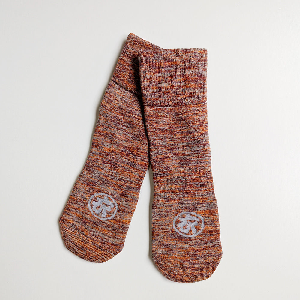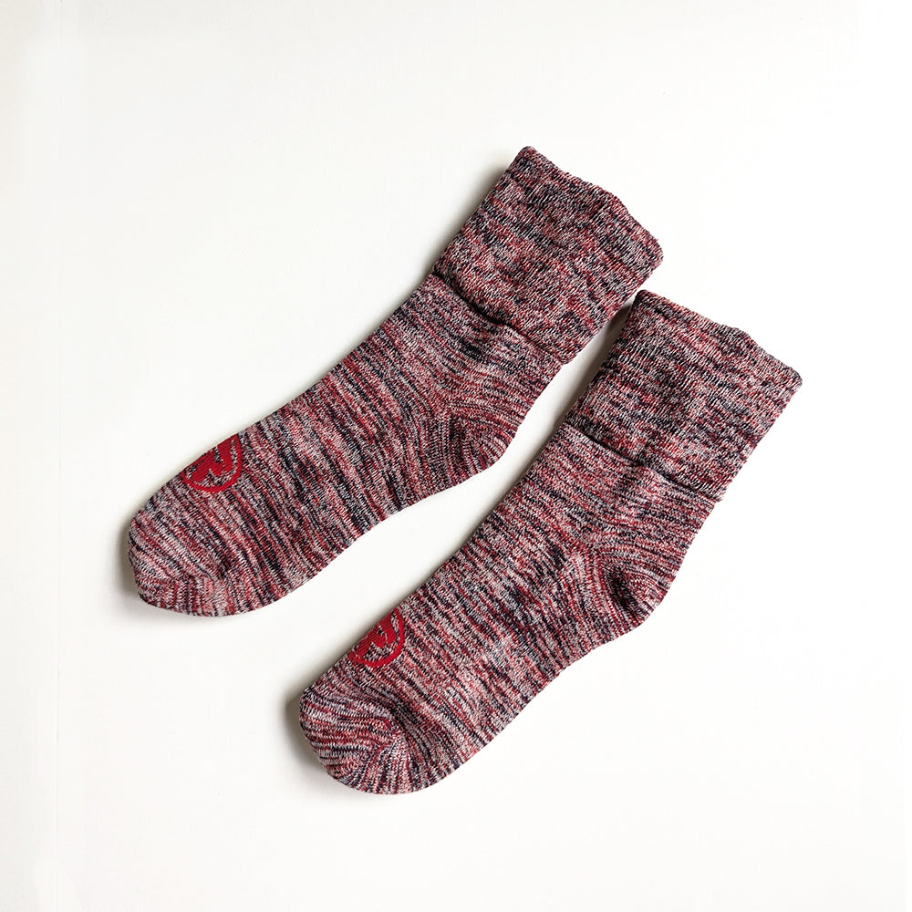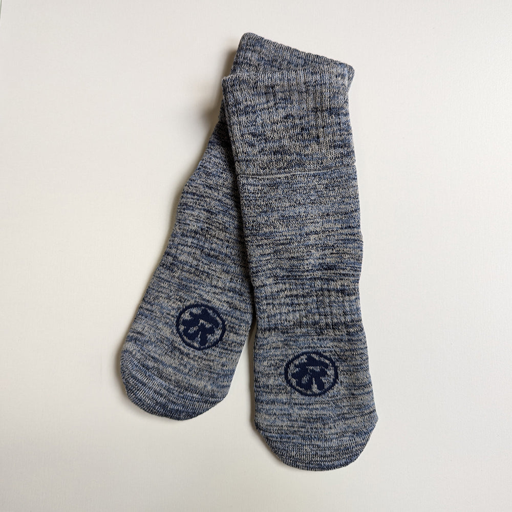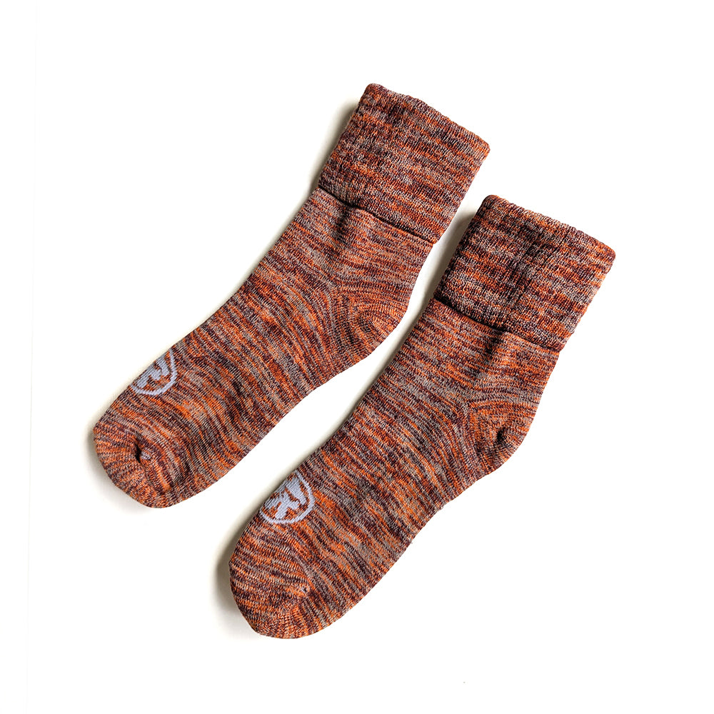 ムラ染めしたコットン100%の糸を使い、 肉厚で丈夫な靴下を作り続ける日本の靴下工場と出会った。