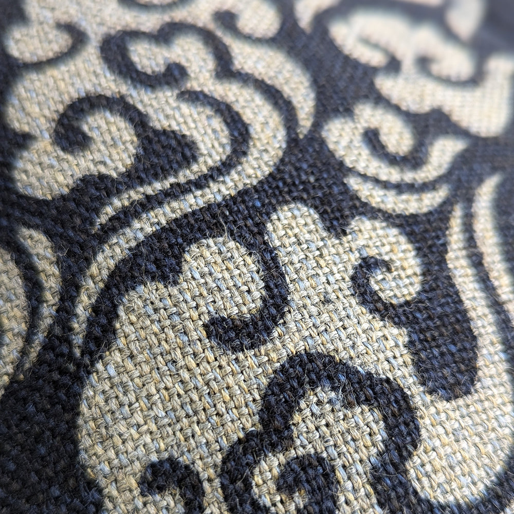 トップ部分には、実りと豊穣を表し吉祥文様の一つとされる「雲」を抜染(ばっせん)で入れました。