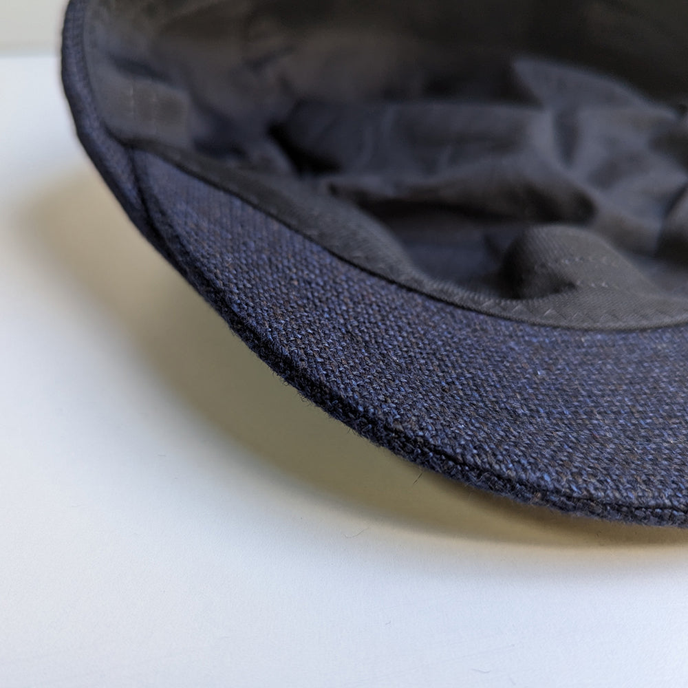 麻の生地なので、幅広い季節に着用でき、何にでも合わせやすい、シンプルなハンチング。