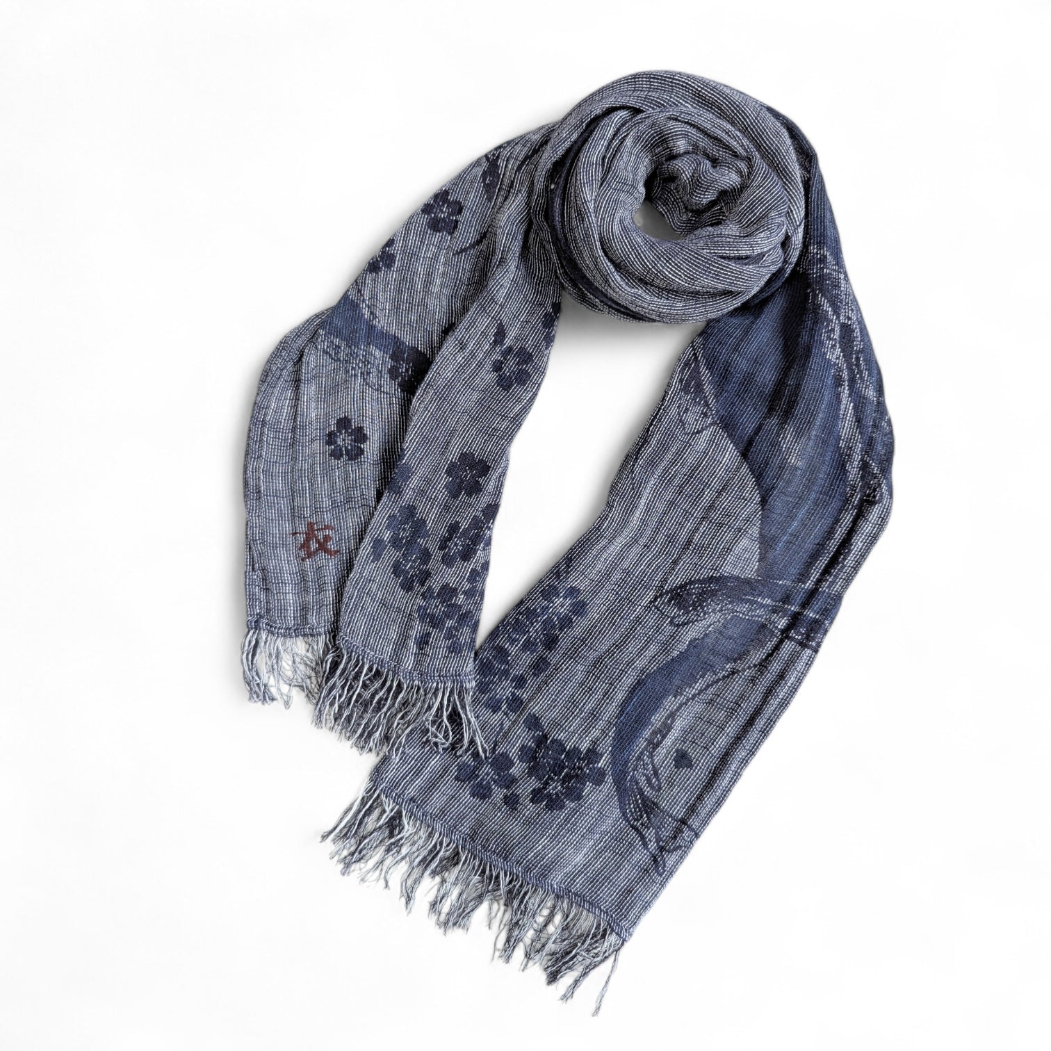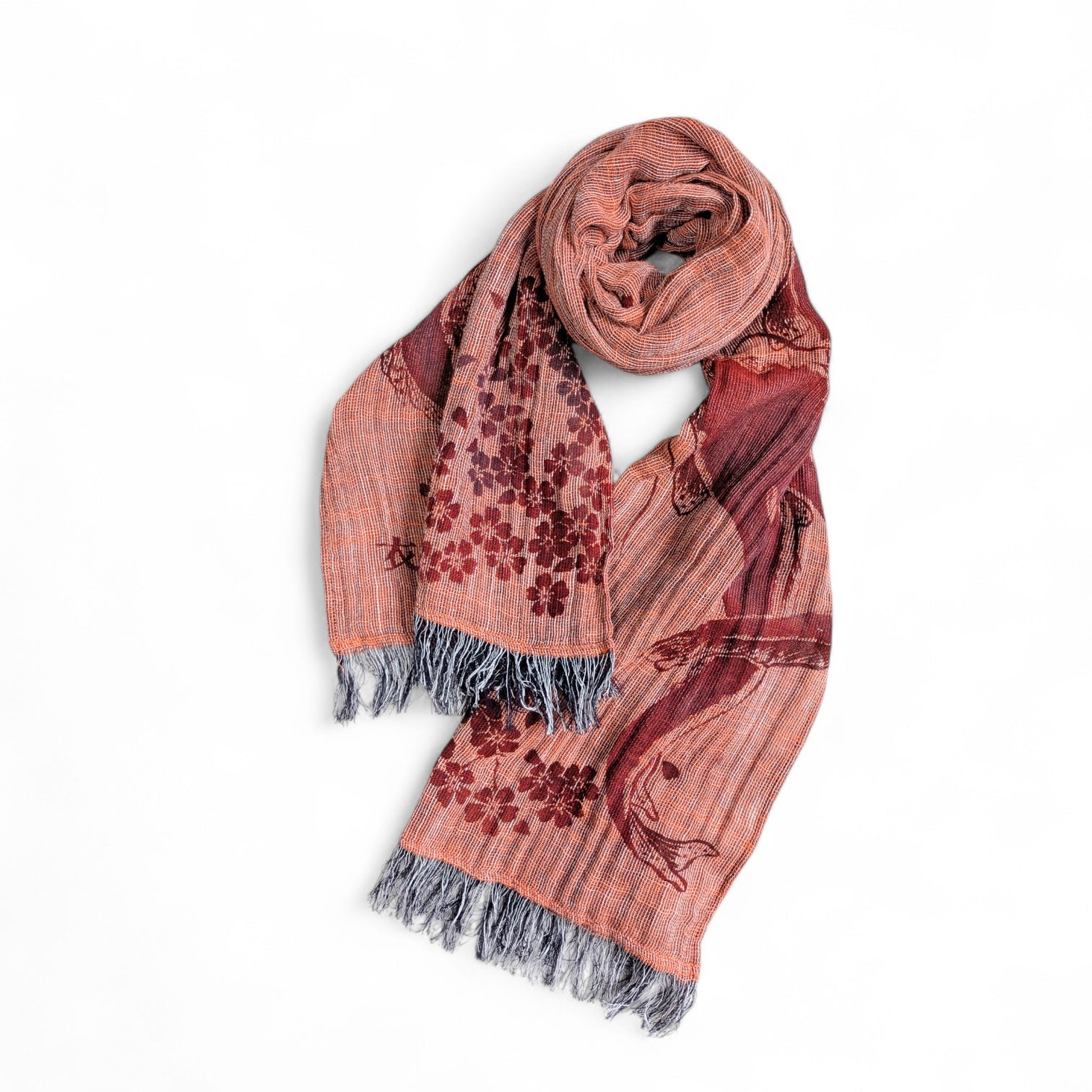 桜と鯰 ガーゼ亀田縞ストール