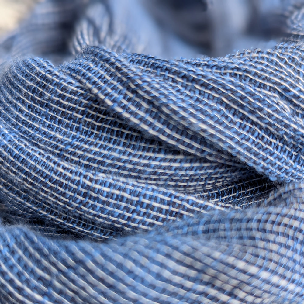 太細の糸が生み出す縞は、素朴でありながら、どこか表情のある織りです。