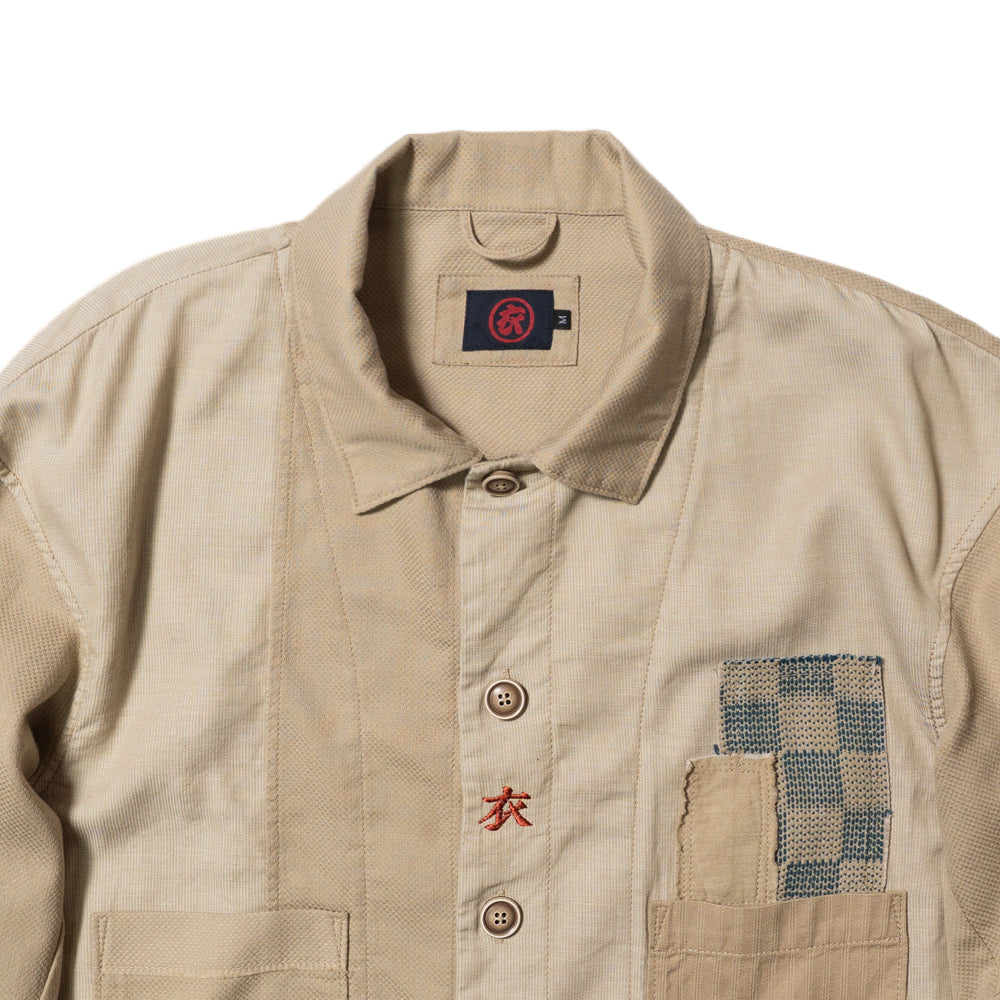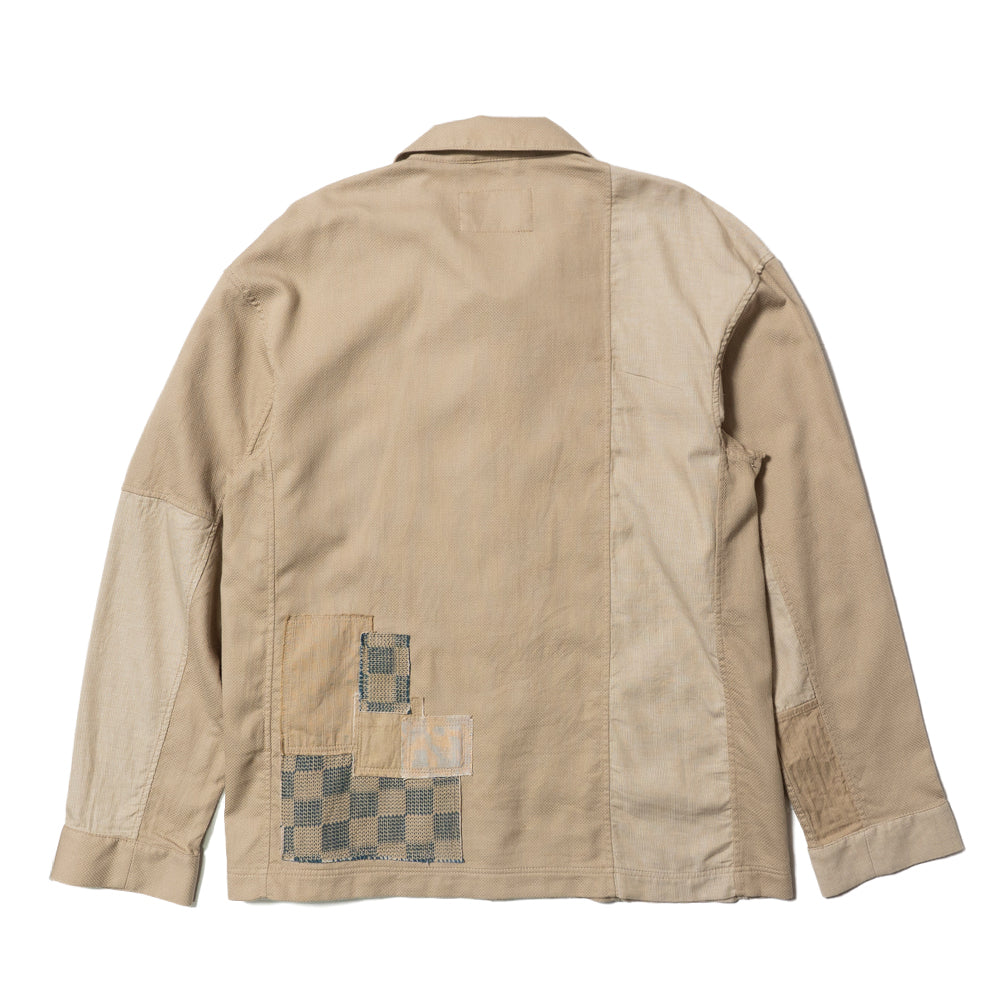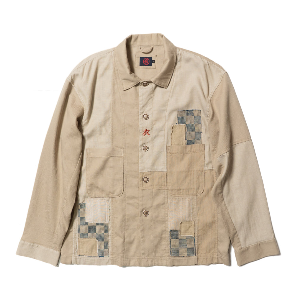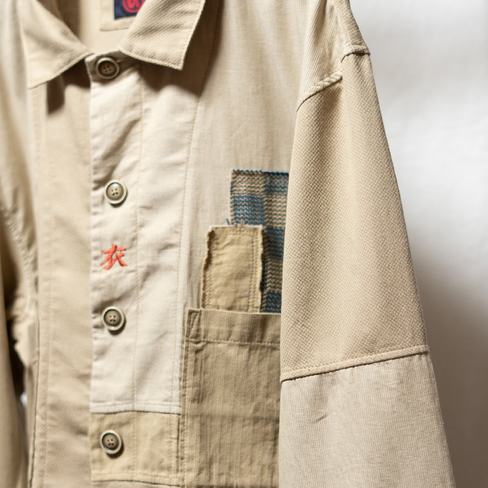 色々の形や柄の生地、それから大きさの違う布片を重ねたりはぎ合わせたりして、より変化に富んだ表情を生み出すパッチワークカバーオール。