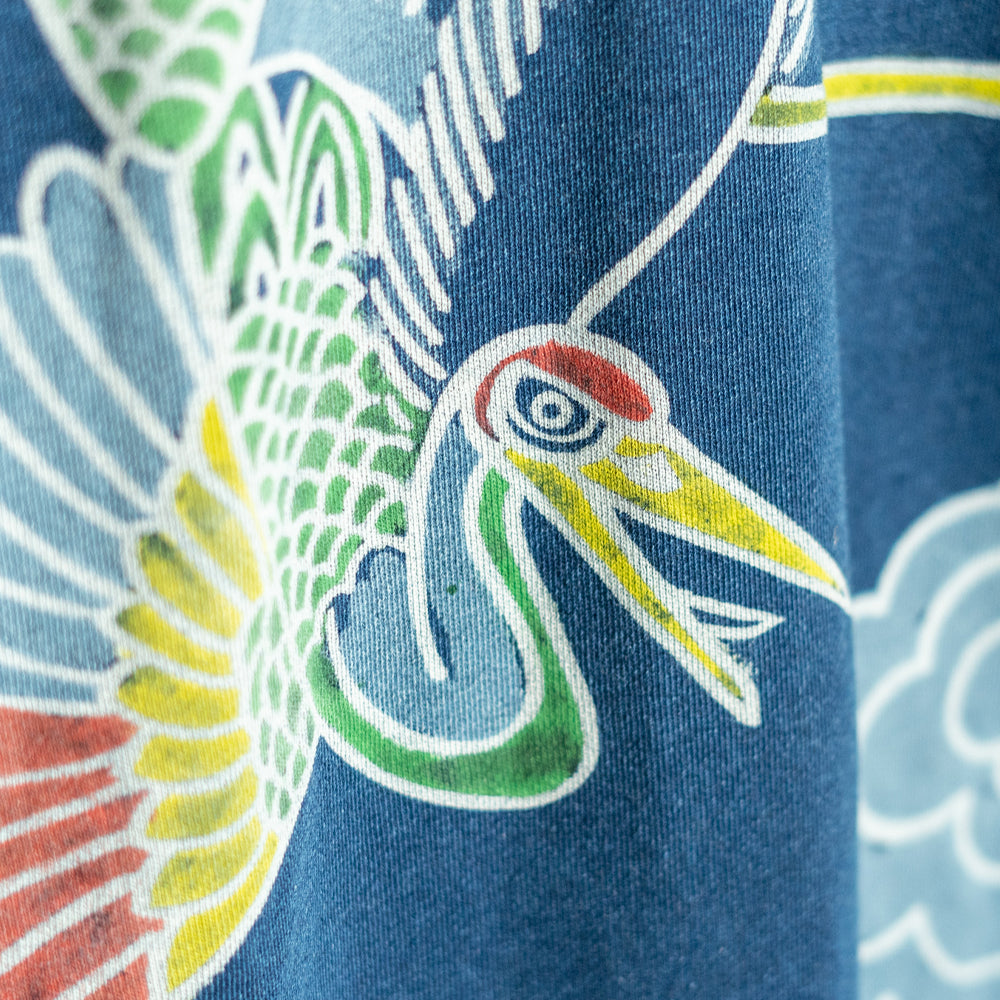 特に鶴はめでたい前触れを、知らせてくれる鳥として崇められ、その羽はけがれのない清浄を意味するものとして、人々は行事や儀礼の中で人生が幸せでありますように・・・と祈りながら筒描きの鶴を見上げたものでした。