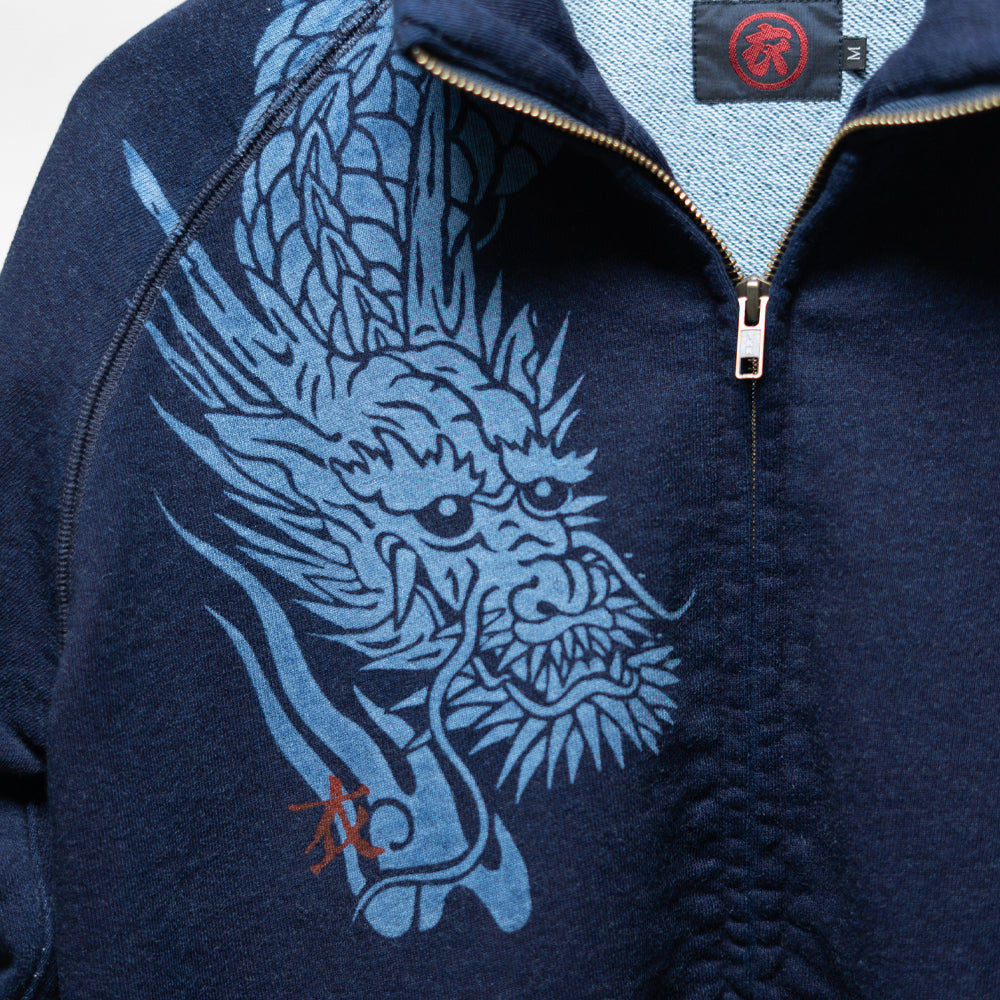 「衣」の定番であるインディゴ裏毛ジップの新作です。
