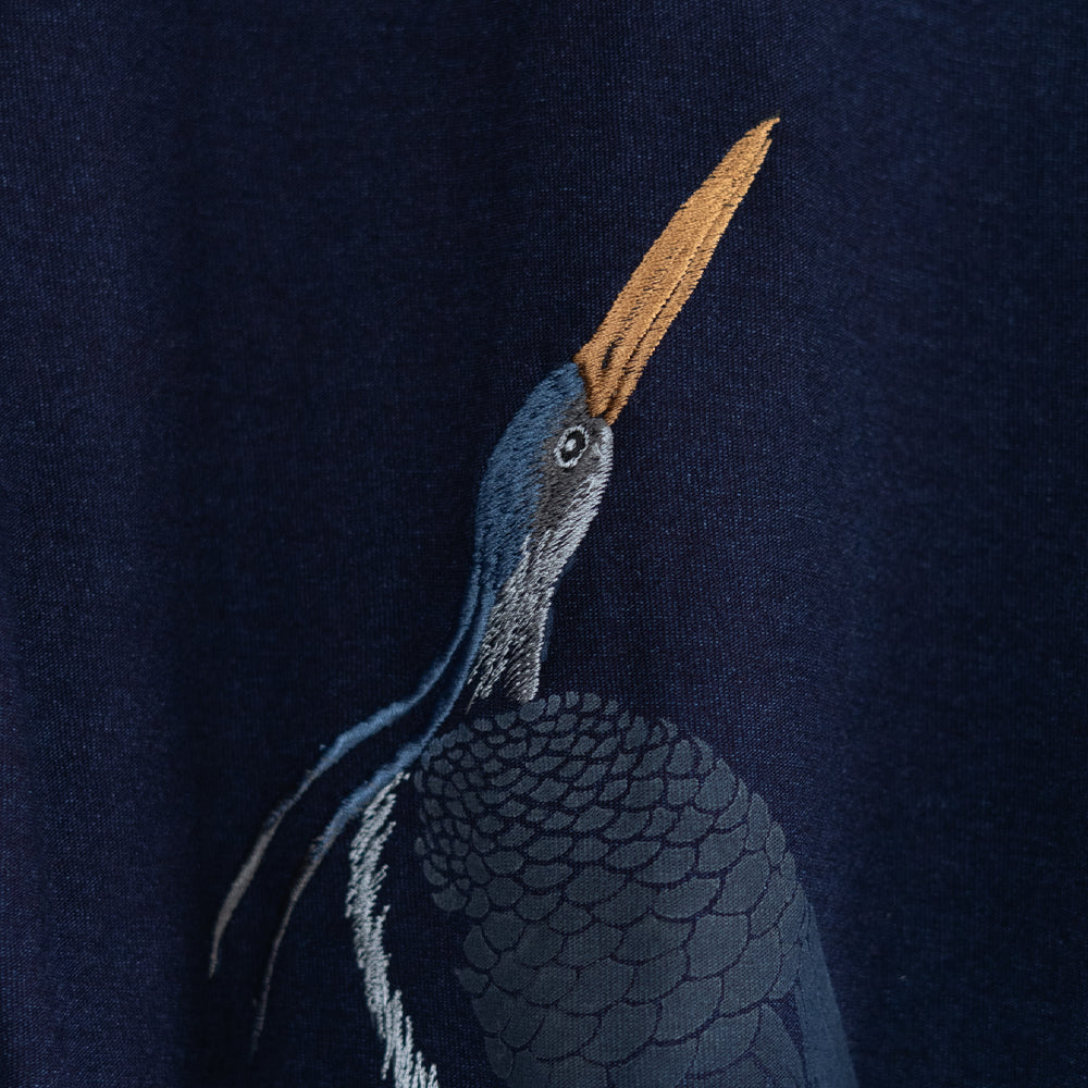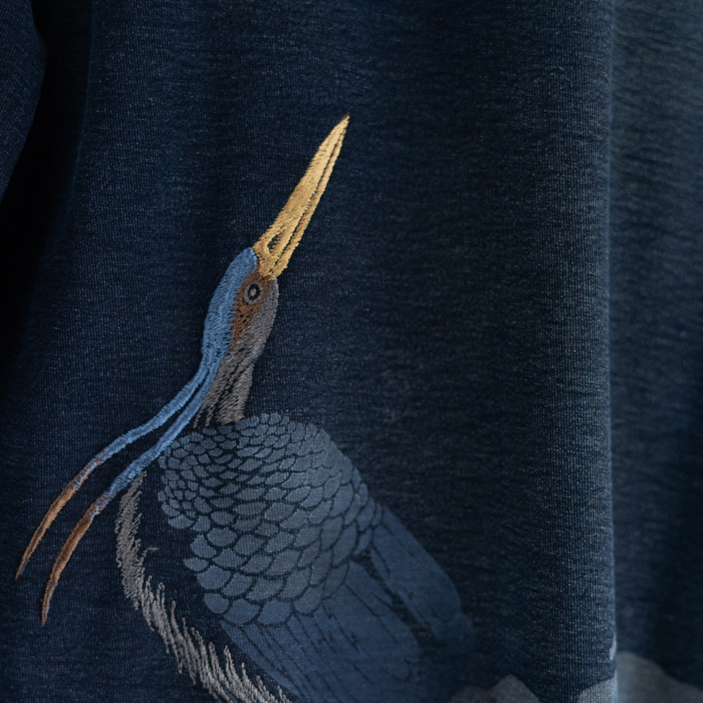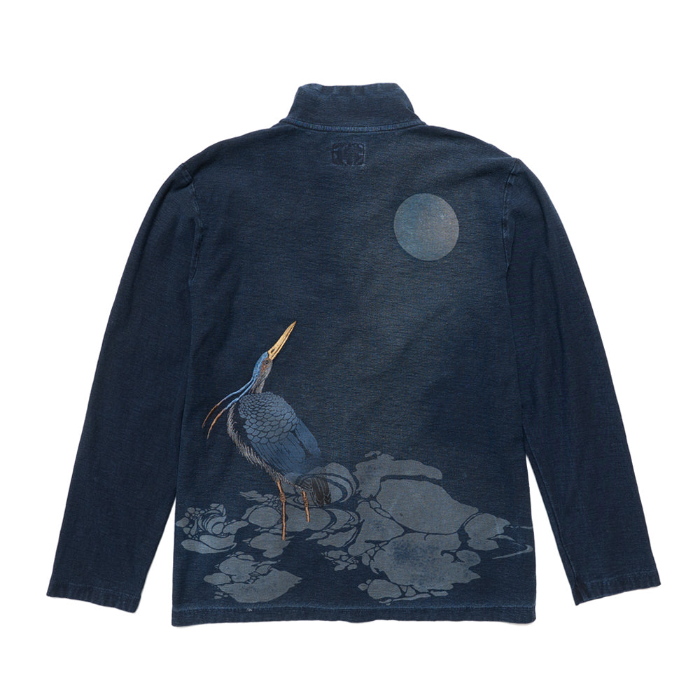 そんなアオサギも、冬の澄んだ空気の中、川面に光を落としてくれる月に見とれてしまう事もあるのかな・・・と想像して、柄を描いてみました。