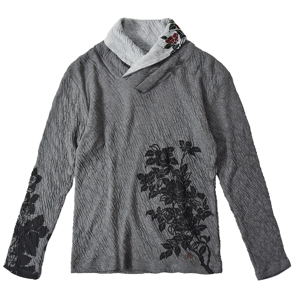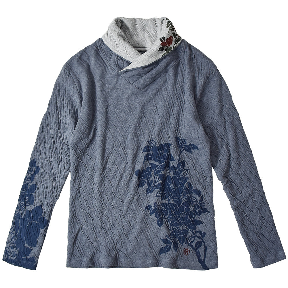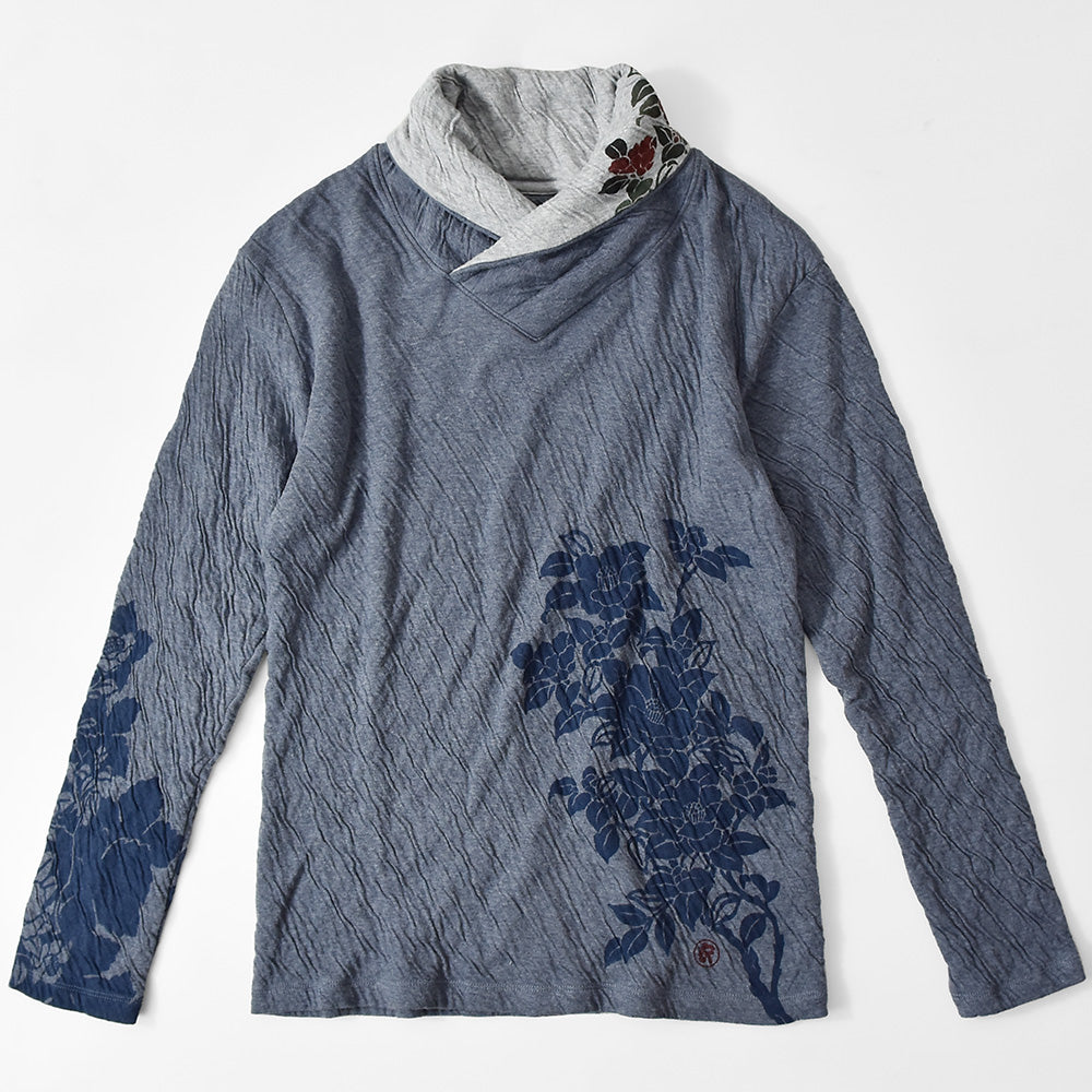 群集椿 着物衿接結ロングTシャツ