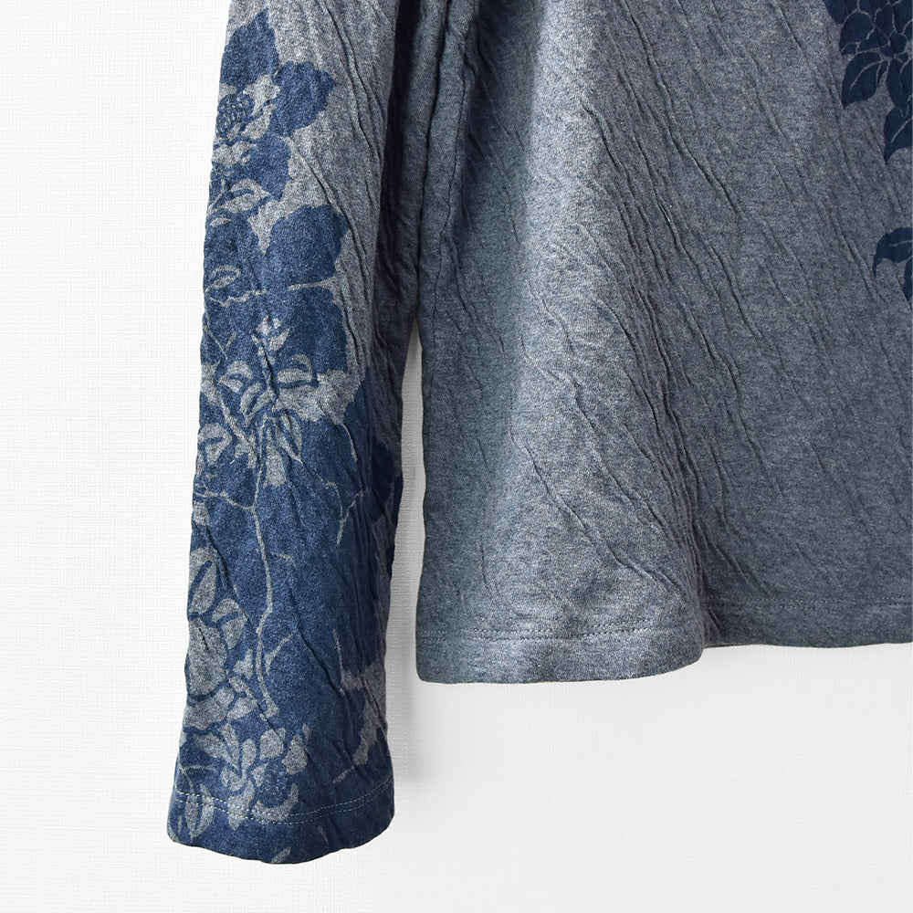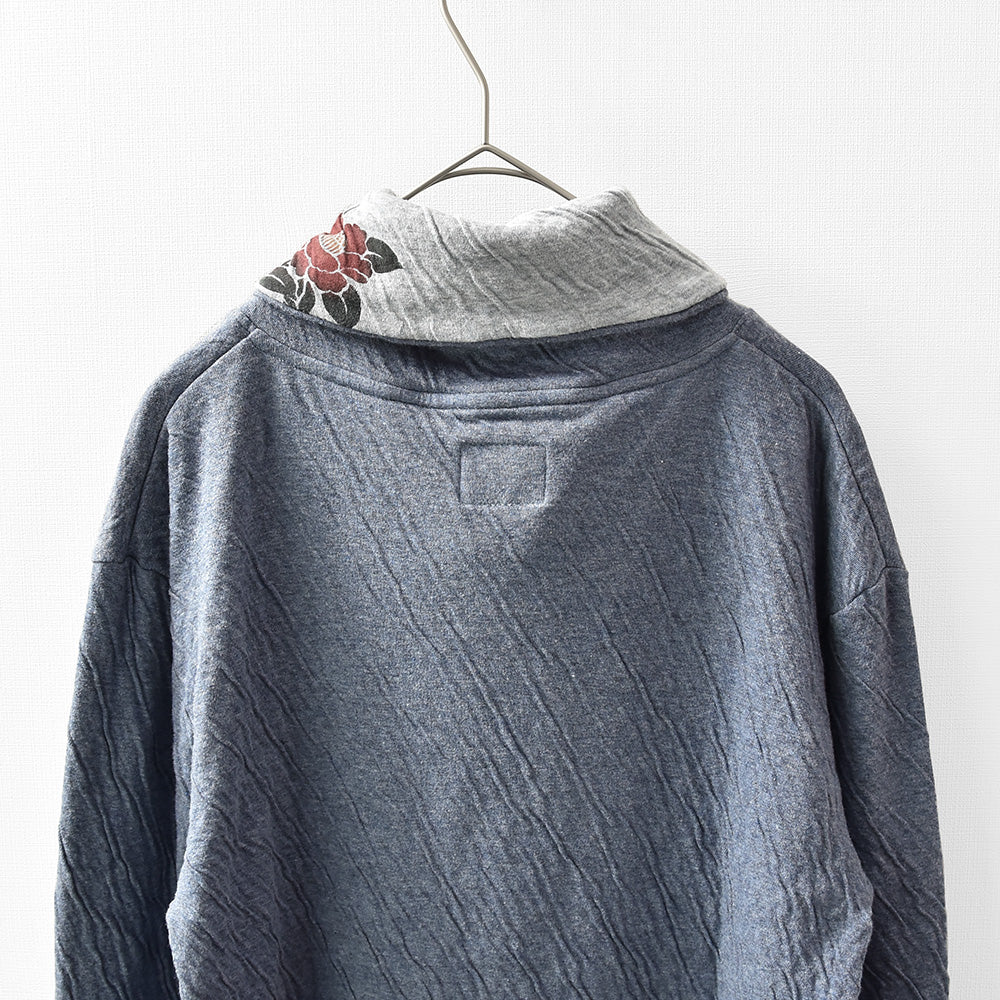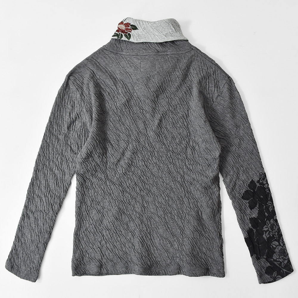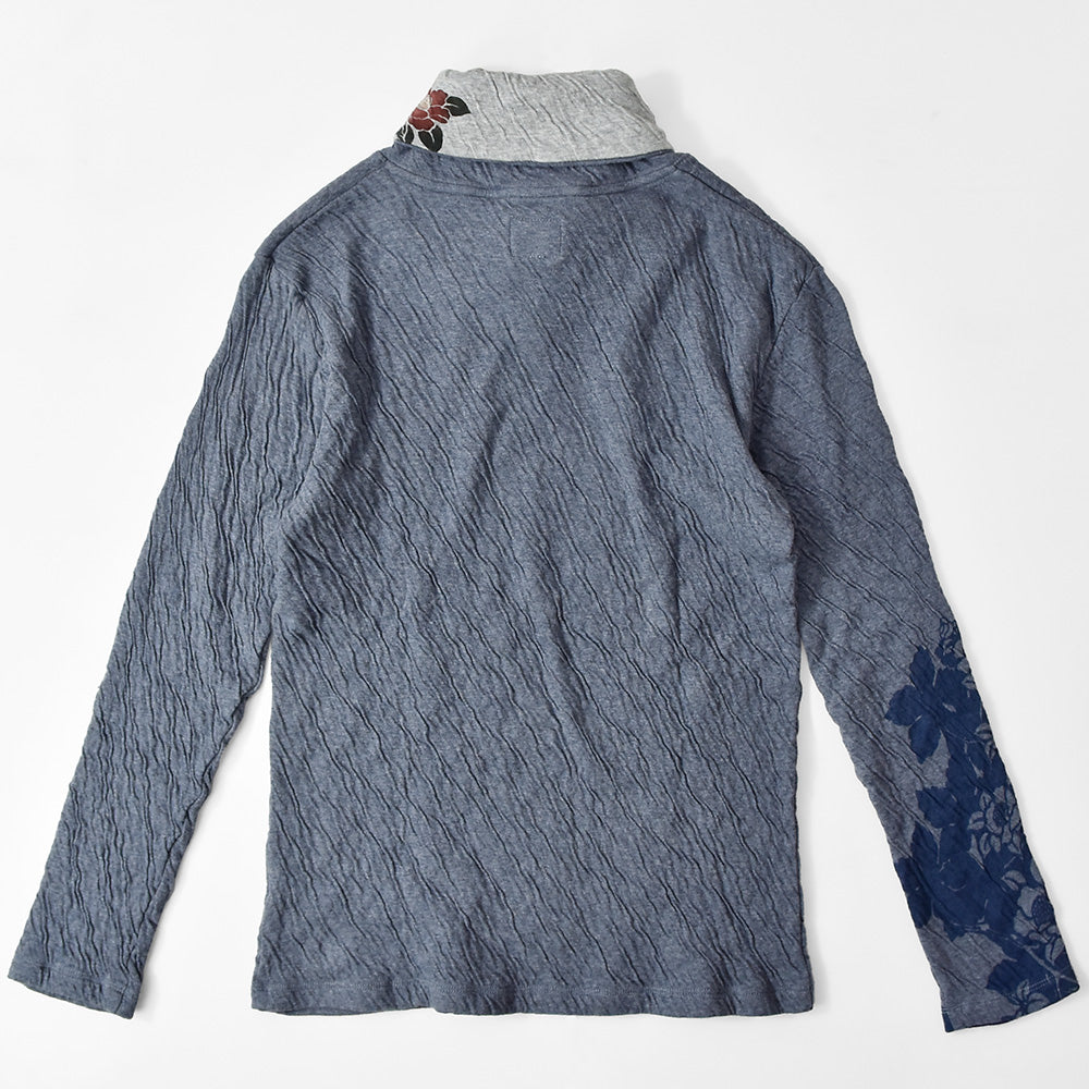 群集椿 着物衿接結ロングTシャツ