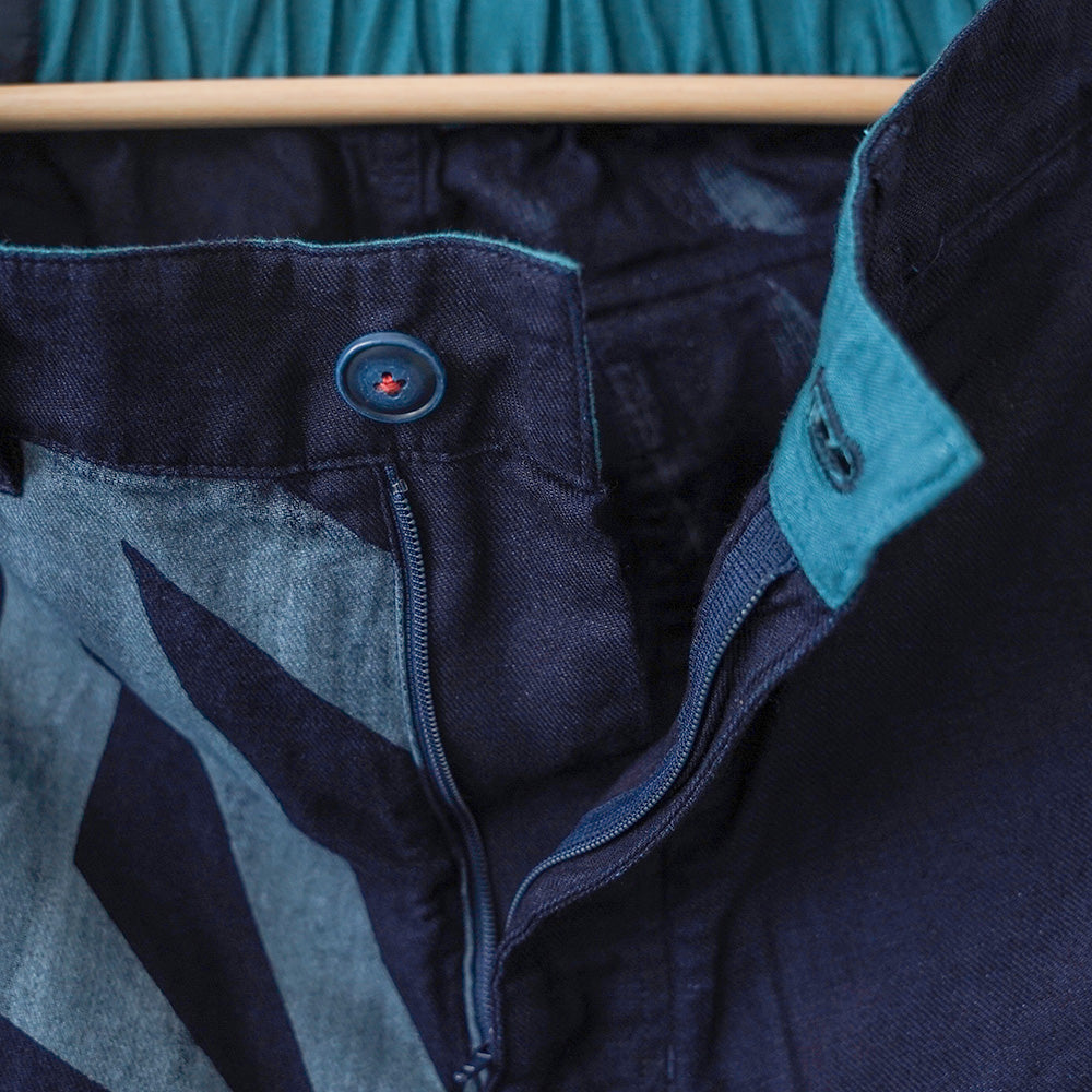 見た目に想像がつかないほど軽く、楽ちんにはけて、 くるぶしも少し見せるアンクル丈なのでスニーカー、革靴のみならず、 サンダルや雪駄にも相性抜群の夏パンツ、できました!