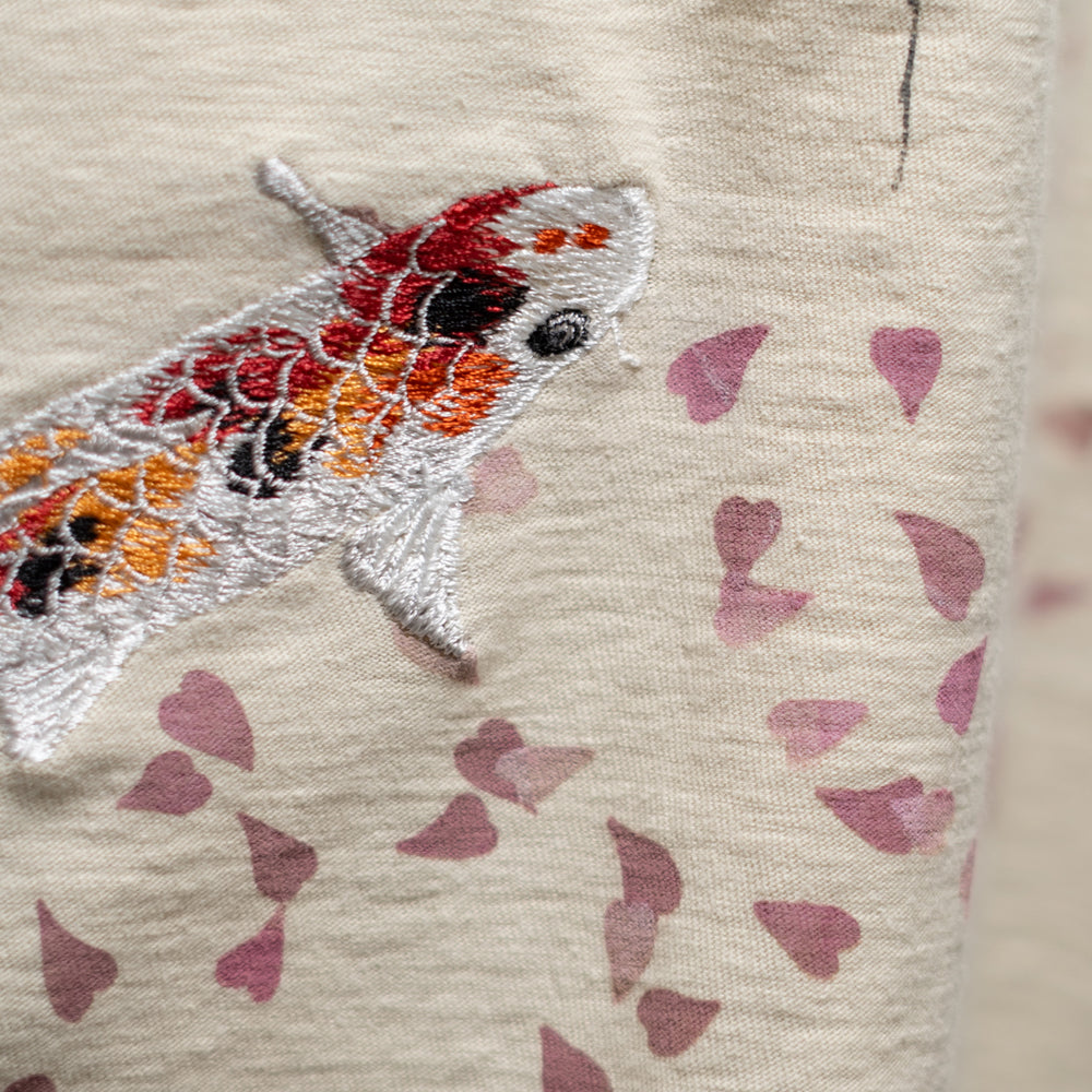 とあるようにこの手振り刺繍の錦鯉がそれを、1枚の絵として伝えてくれています。