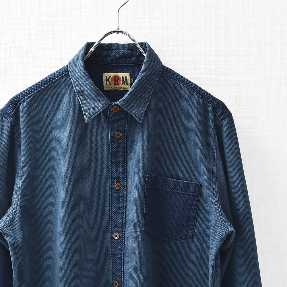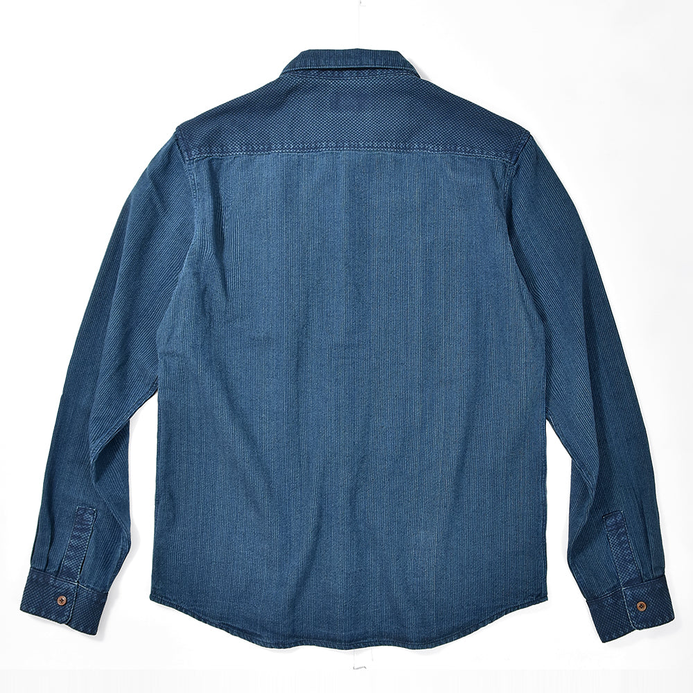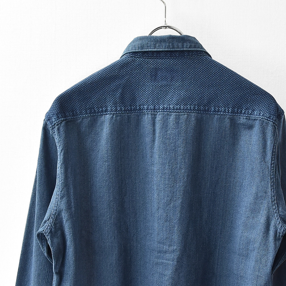 インディゴ染めの生地に、織り込まれたストライプ文様が静かに存在感を放つ、毎日の着合わせにぴったりな長袖シャツの登場です。