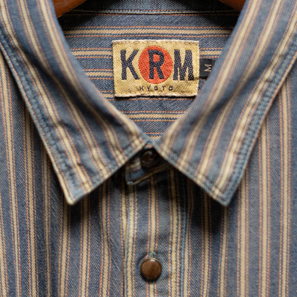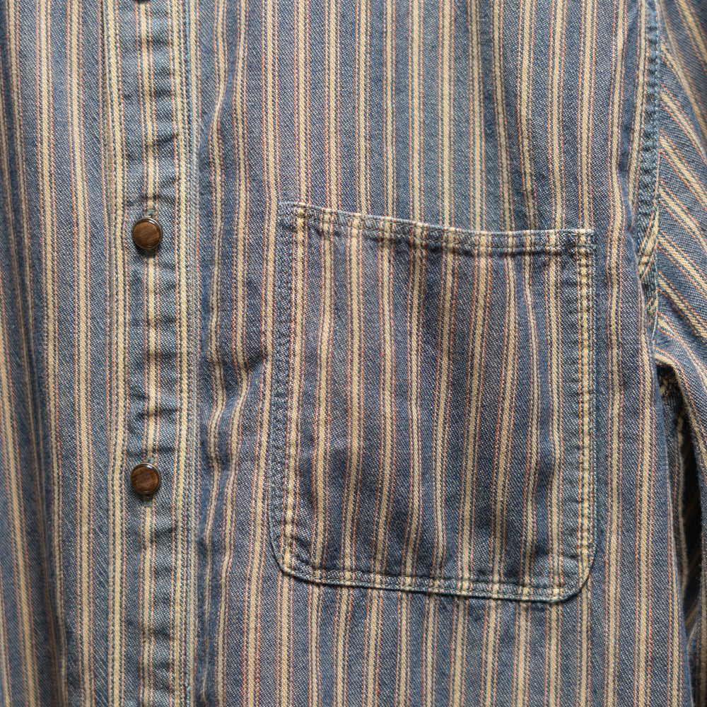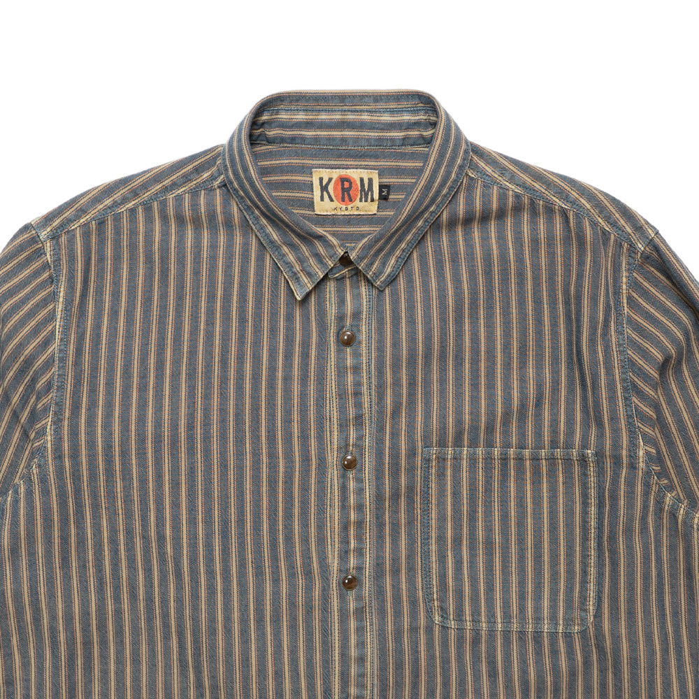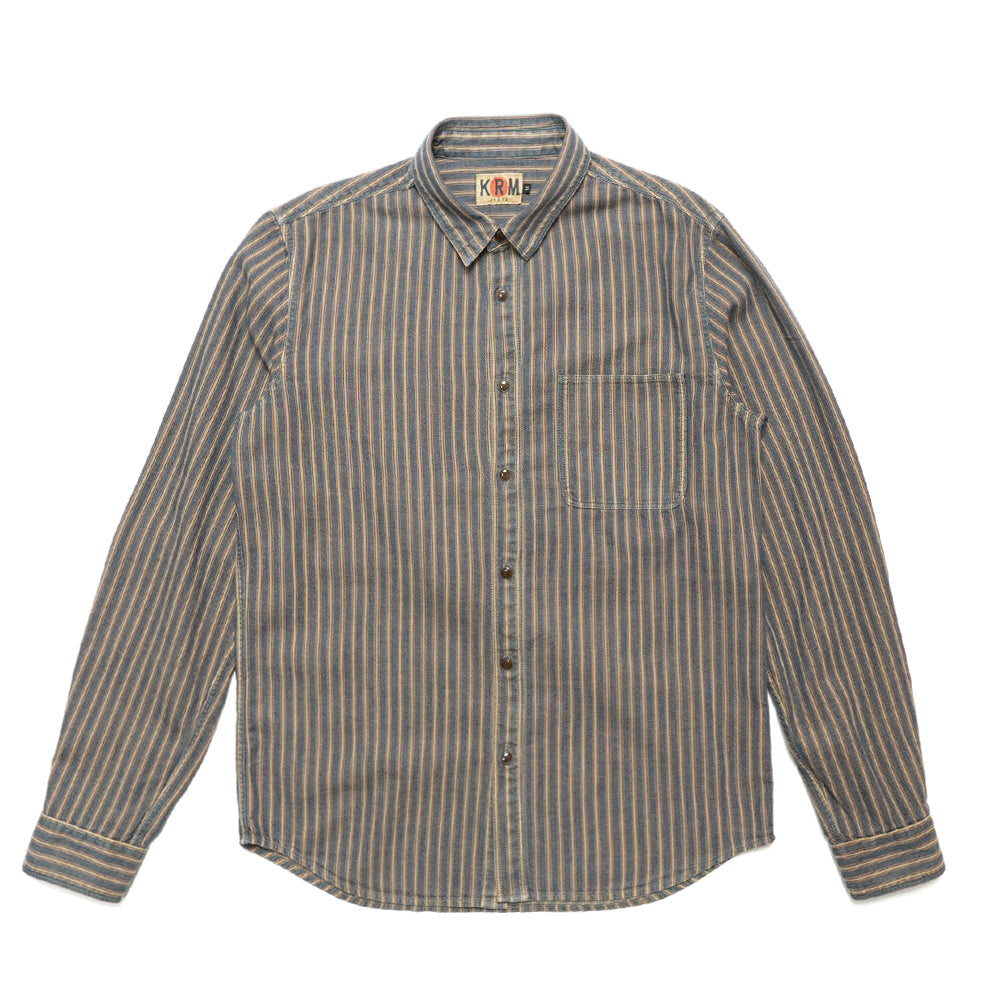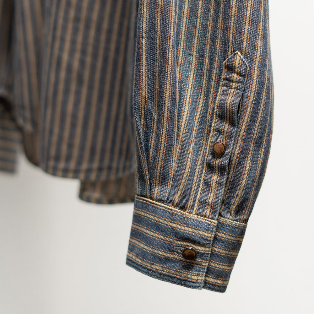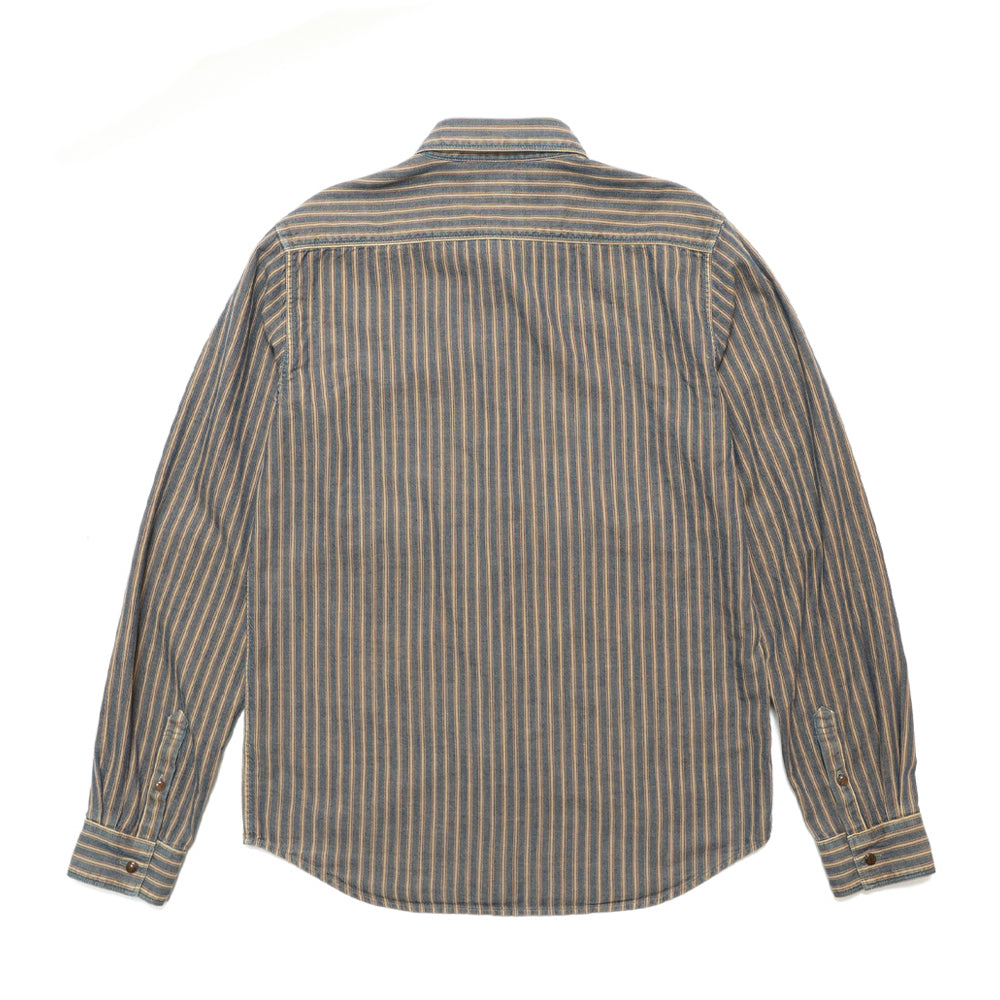インディゴストライプ長袖シャツ