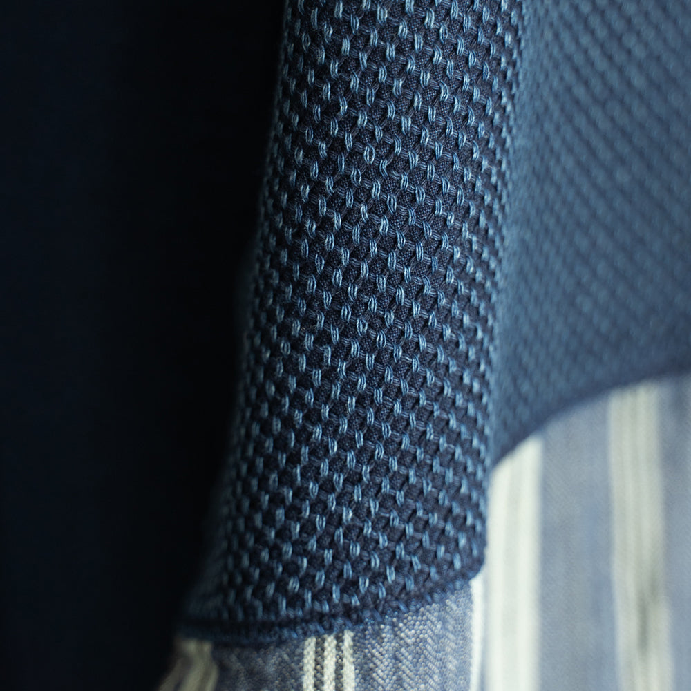 ※この作品は藍(インディゴ)で染めています。 雨や摩擦等で移染するおそれがございますので、単独でお洗濯くださいますようお願いいたします。 ※サイズ表記はあくまでも目安となります。種類やデザイン、素材などにより内容が異なる場合がございます。予めご了承ください。 |
