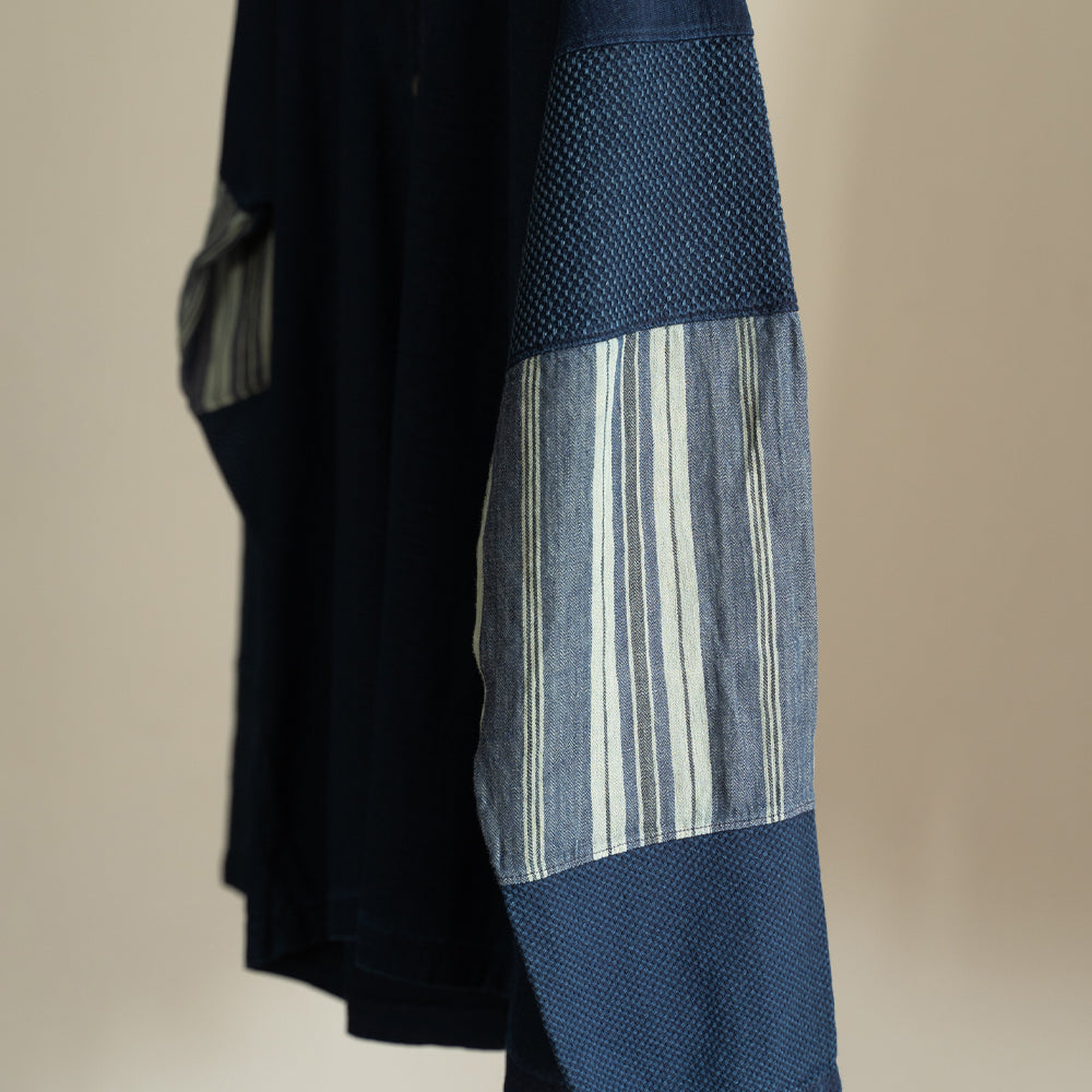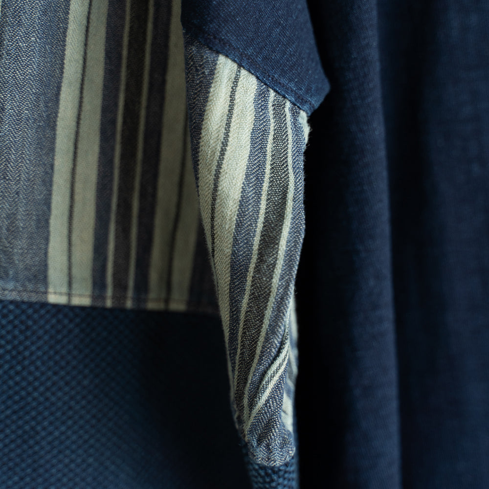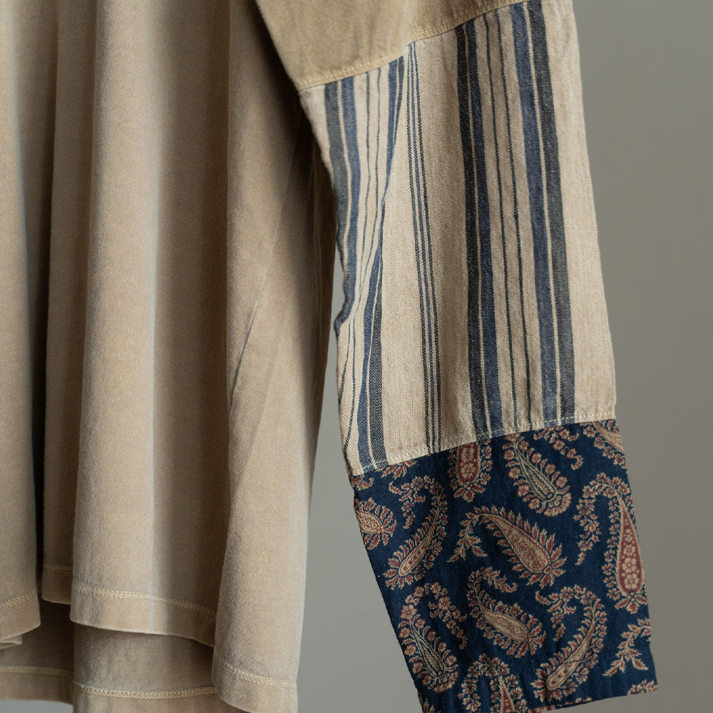 袖を何度も違う生地で切り替えをしてポイントを持たせて1枚でもおしゃれに、重ね着レイヤードも楽しめるように・・・そして何よりも祭り人の心意気に触れるように作られれたロンTです。