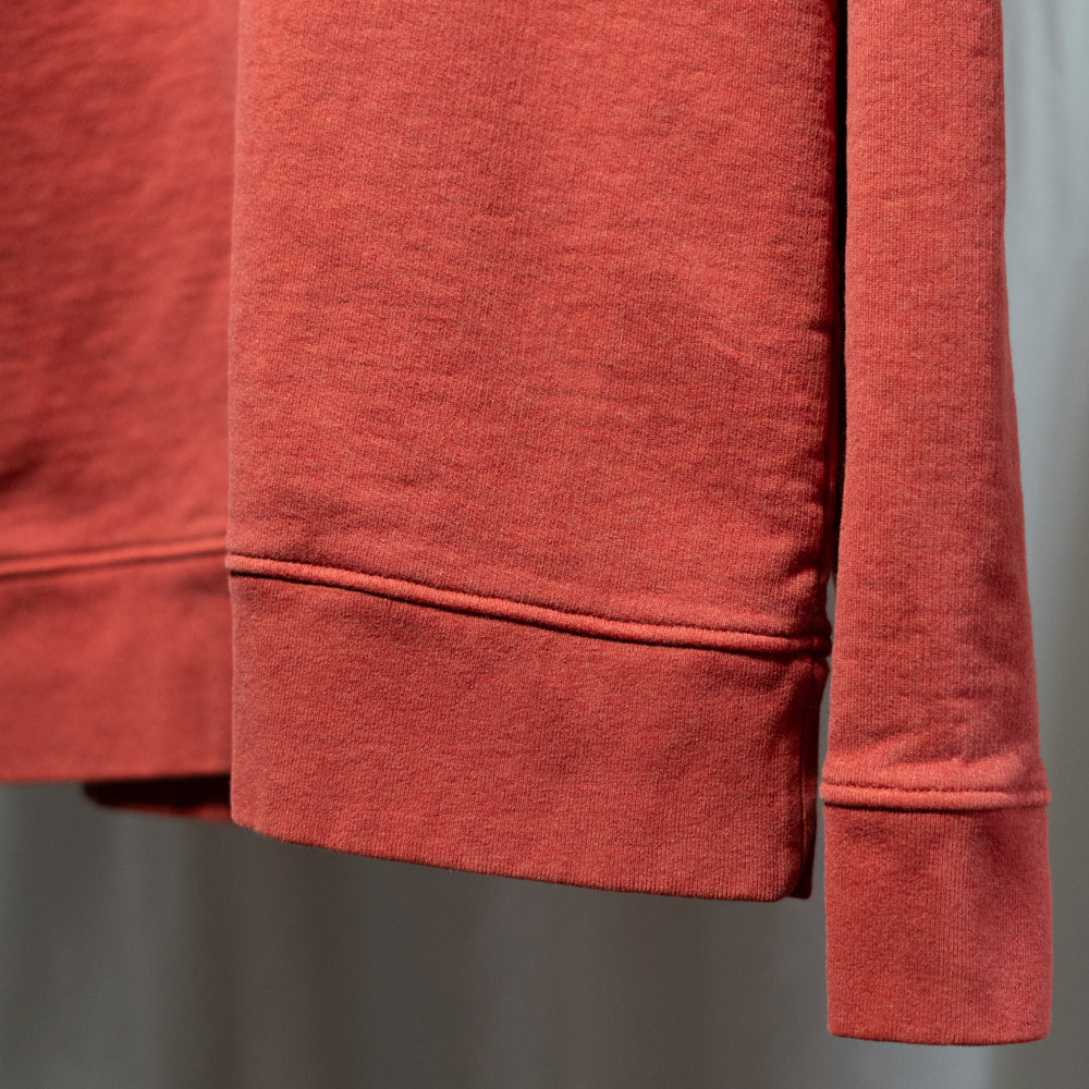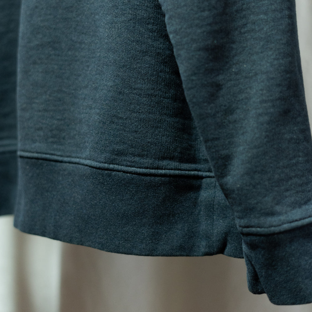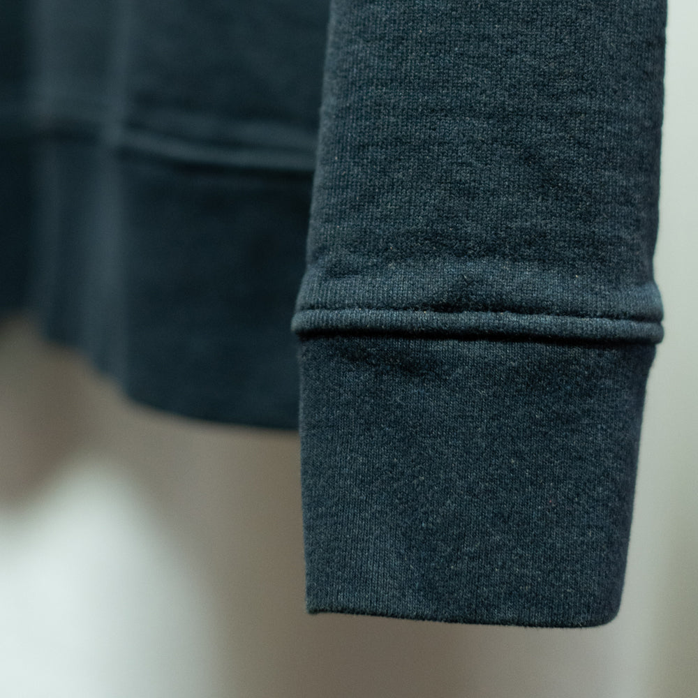 ベースとなる色に染めた後、さらにベージュでもう一度染め上げることで裏毛部分ともども、程よく馴染んだヴィンテージを思わせる雰囲気へと仕上がりました。