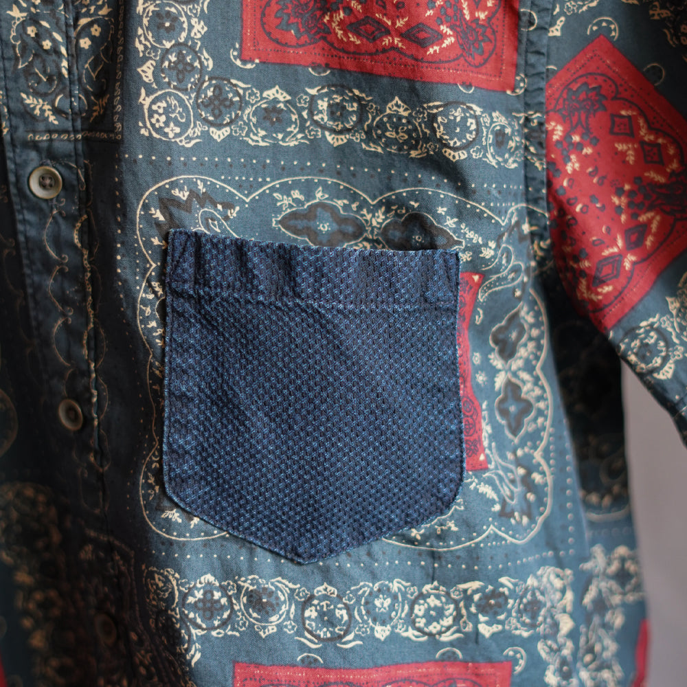 | ※この作品は、総柄の生地を使っています。 その為、裁断上の関係で一着一着 柄の見え方が異なります。 何卒、ご理解いただけますようお願い申し上げます。 ※この作品は藍(インディゴ)で染めています。 雨や摩擦等で移染するおそれがございますので、単独でお洗濯くださいますようお願いいたします。 ※サイズ表記はあくまでも目安となります。種類やデザイン、素材などにより内容が異なる場合がございます。予めご了承ください。 |