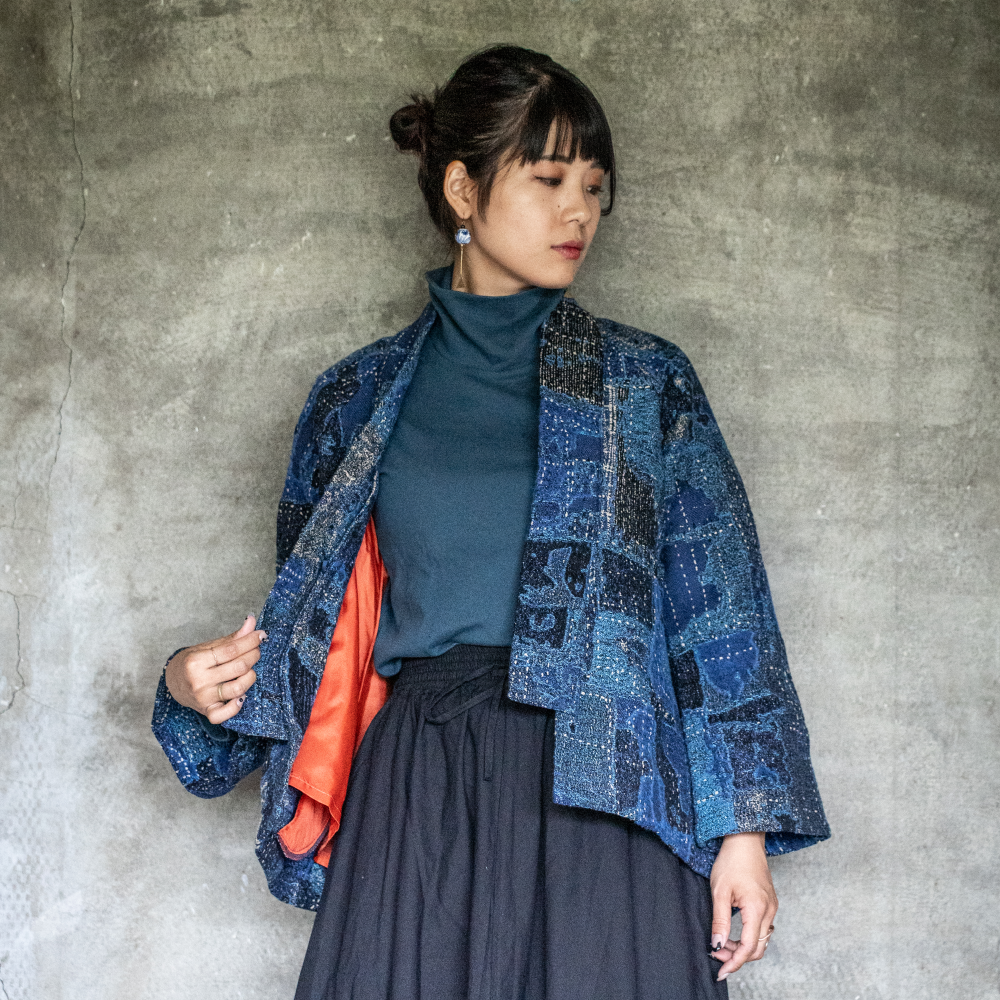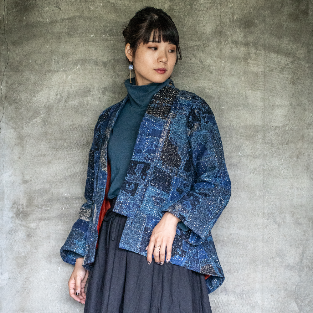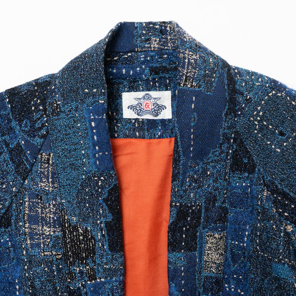 襟元を美しく見せるという文化は我が国で古くからあり、世界からも一目置かれている着物襟(ジャパンカラー)のジャケットです。