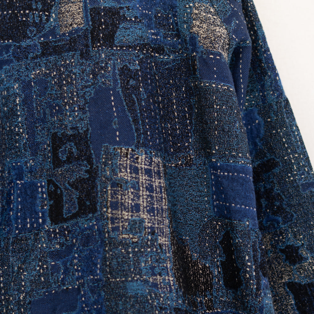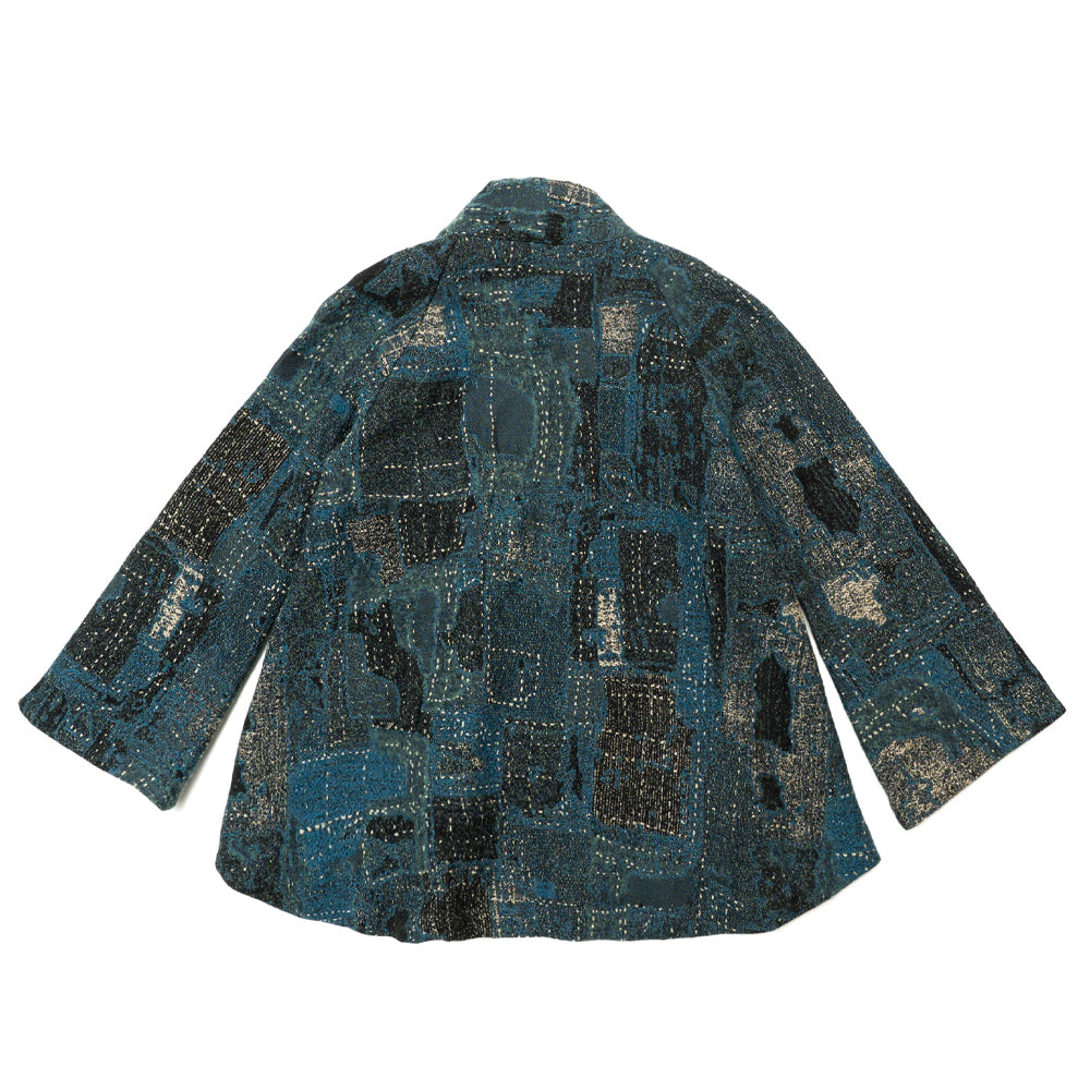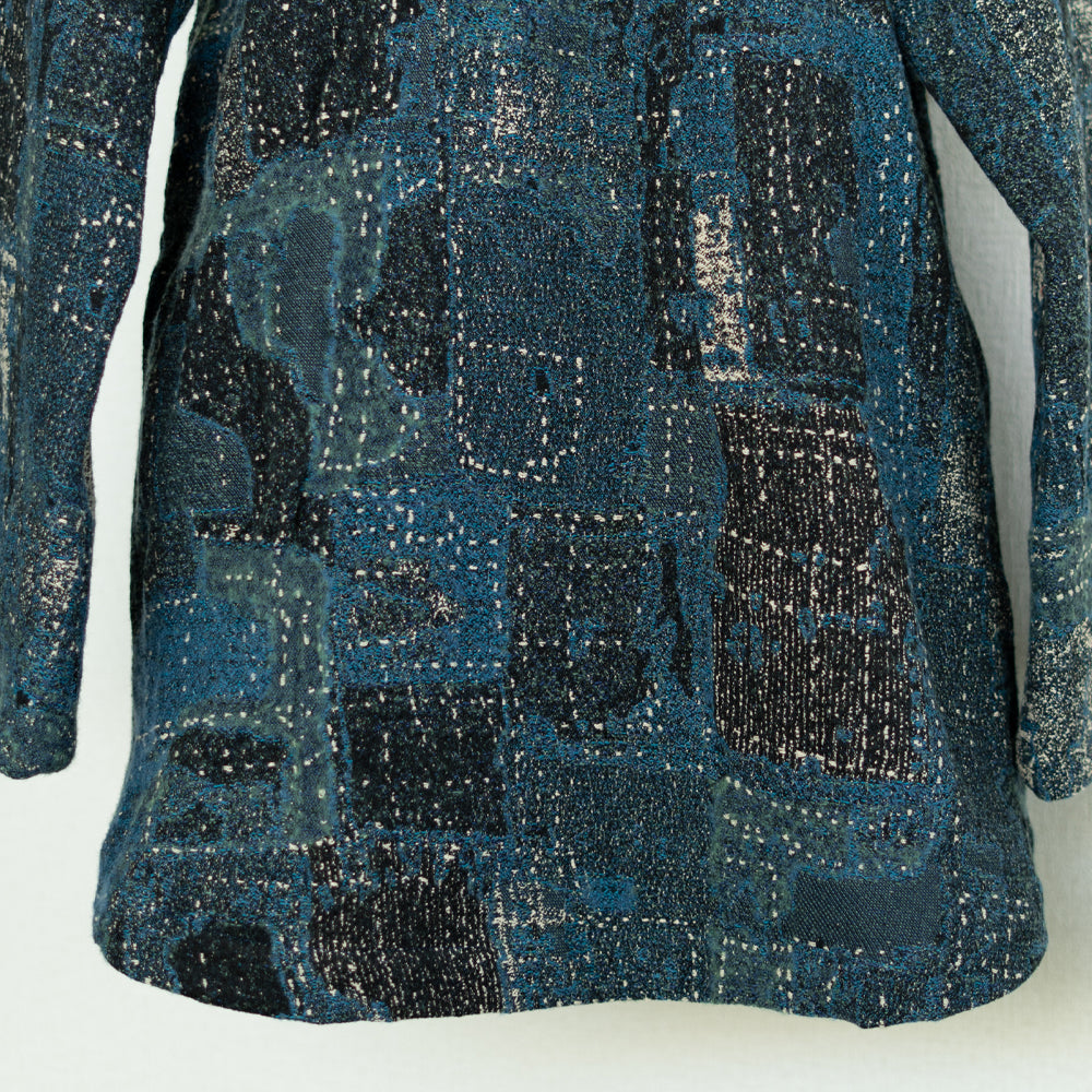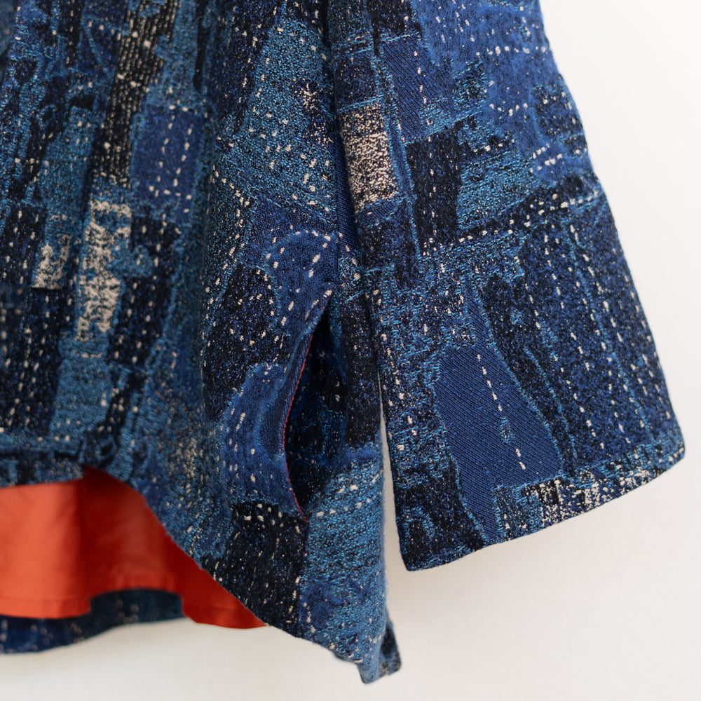 劣化した部分の表現はウールの糸を引っ搔いて作り、幾つかの蓄積された手仕事の部分は、考えられるだけの糸と織りを駆使して作り上げられただけに、圧巻の威力を放っています。