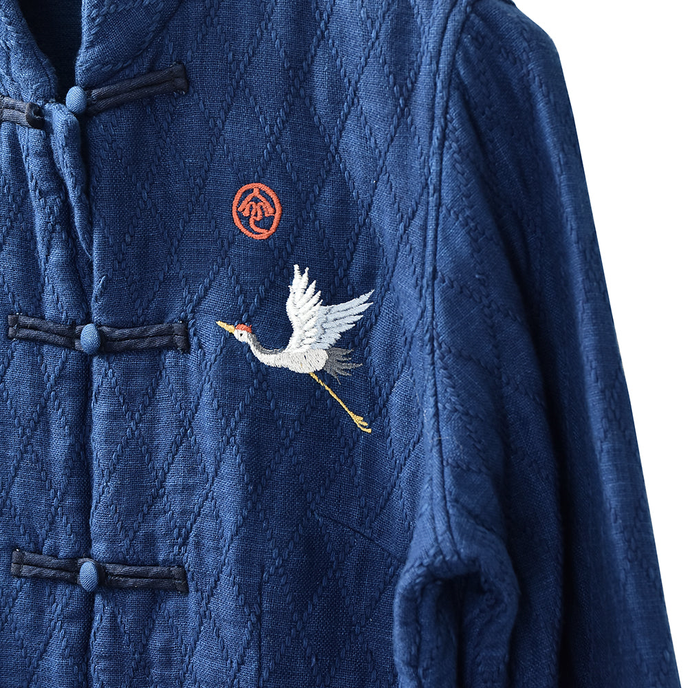 この素材が、引き立つための刺繍はワンポイントの鶴です。
