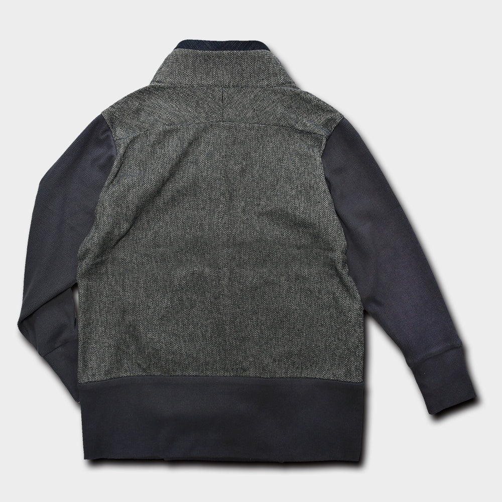 微起毛してあるツイードのようなコットン素材を身頃に、