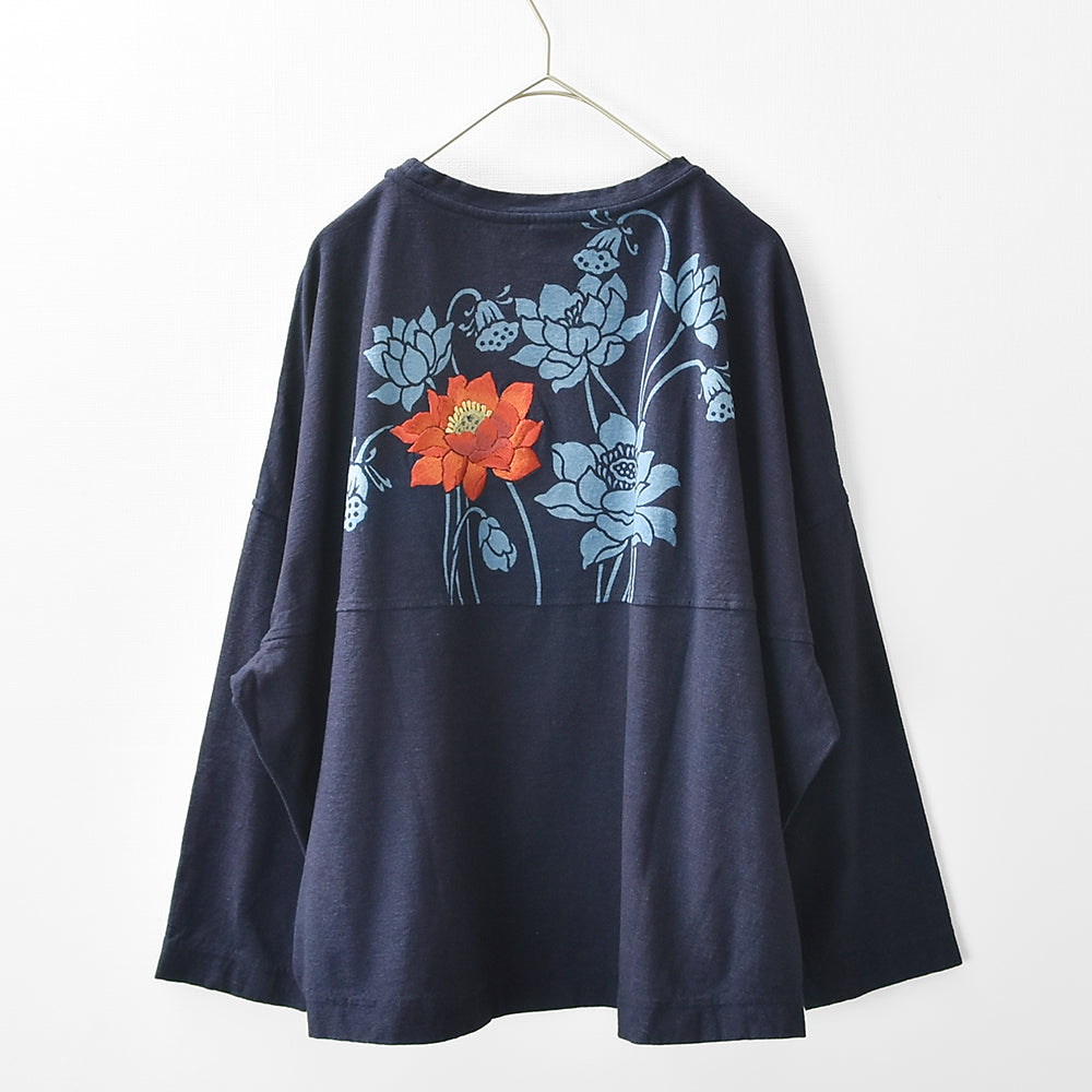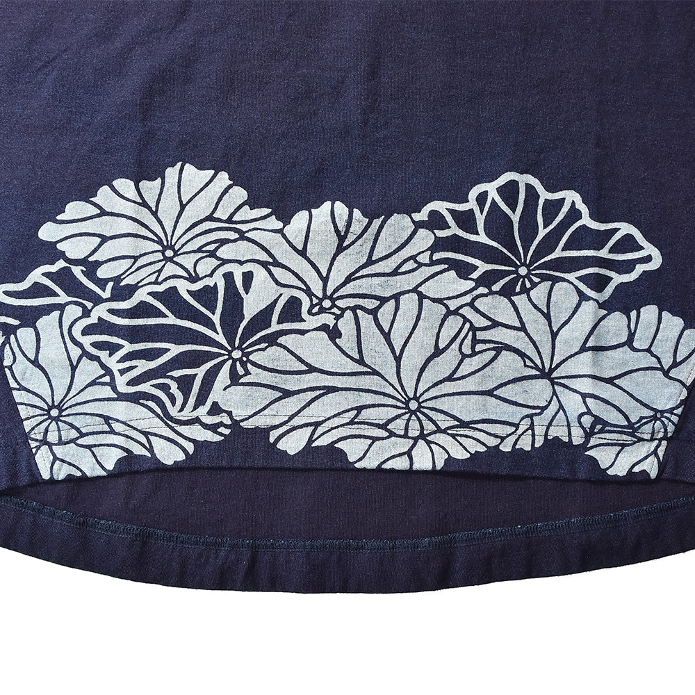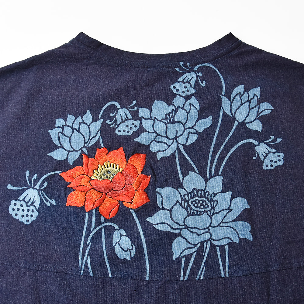そんな真っ赤な蓮が、インディゴの深い藍色の背中に咲きました。