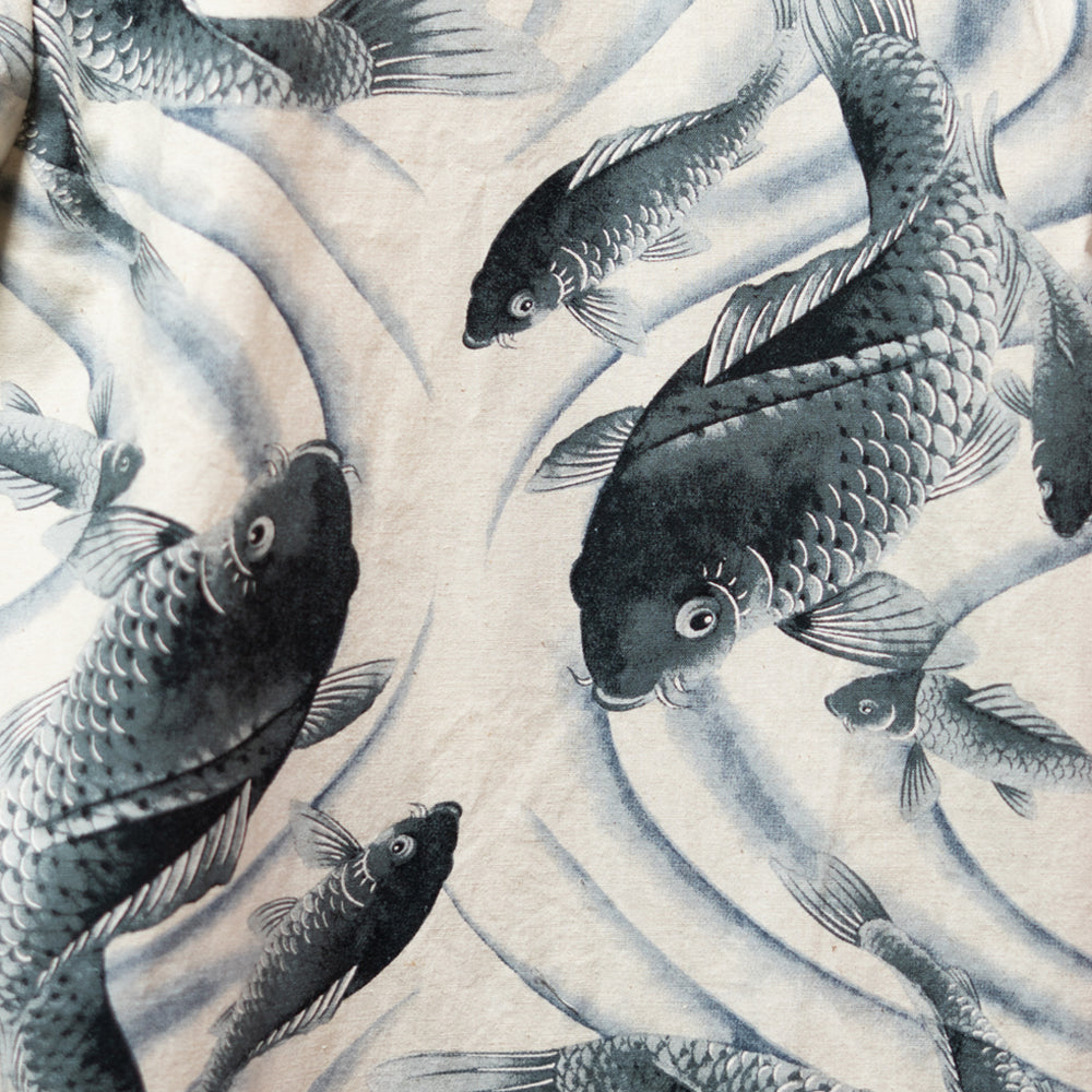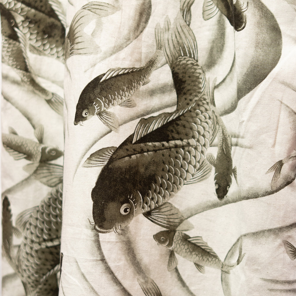どちらも何の変哲もない、墨で描かれた流水を泳ぐ黒い鯉です。