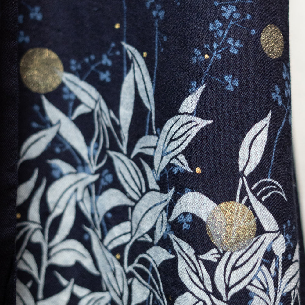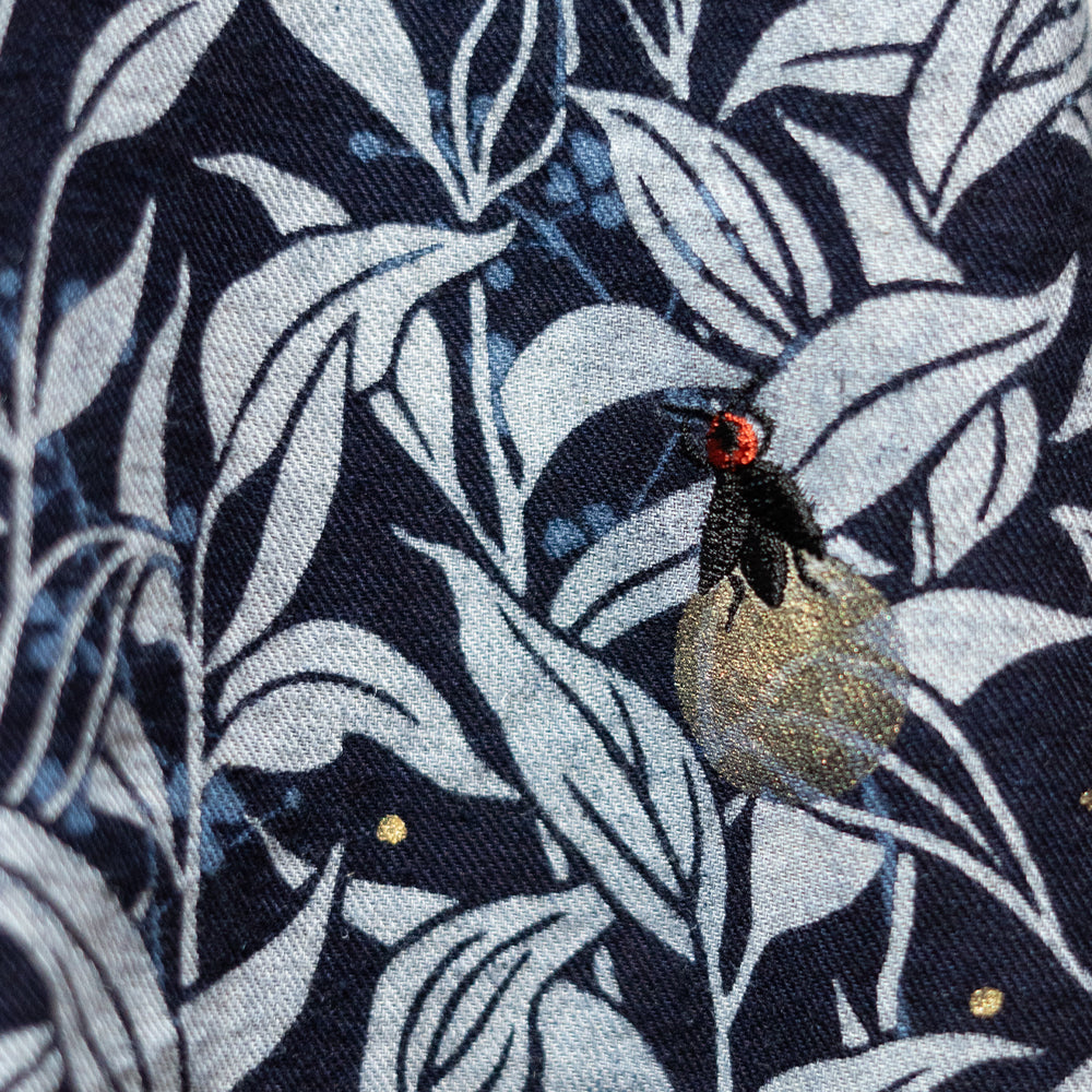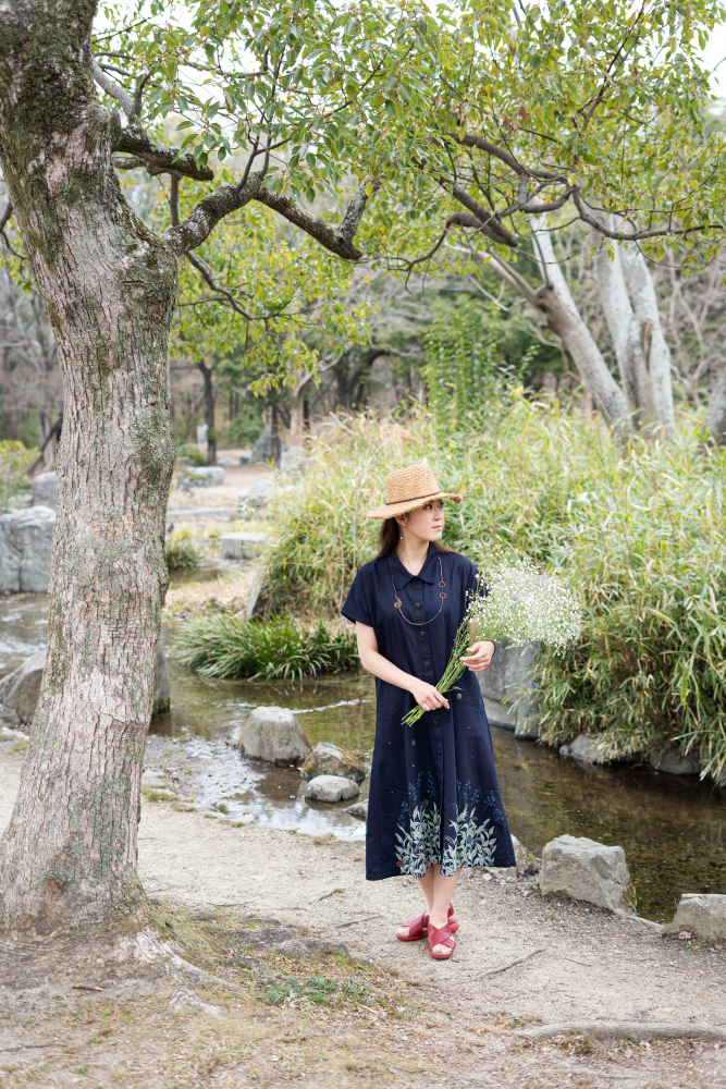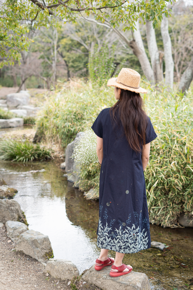 ※この作品は藍(インディゴ)で染めています。 雨や摩擦等で移染するおそれがございますので、単独でお洗濯くださいますようお願いいたします。