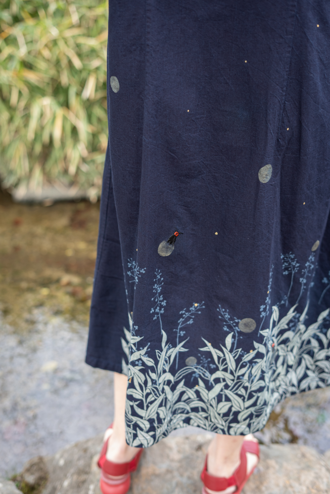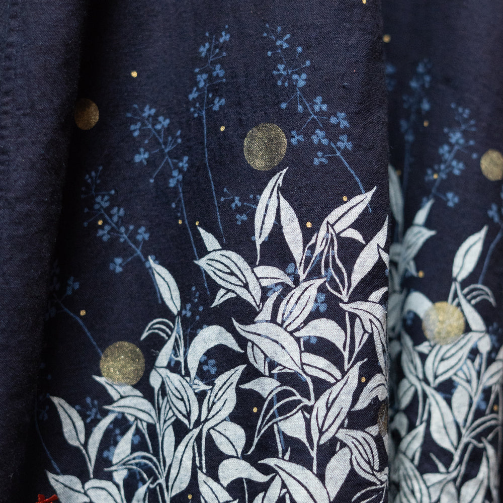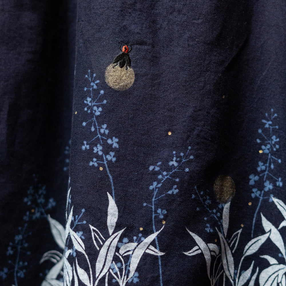 夜の藍色をまとった生地に、ふわり、ふわりと浮かんでる蛍の儚い灯り・・・。