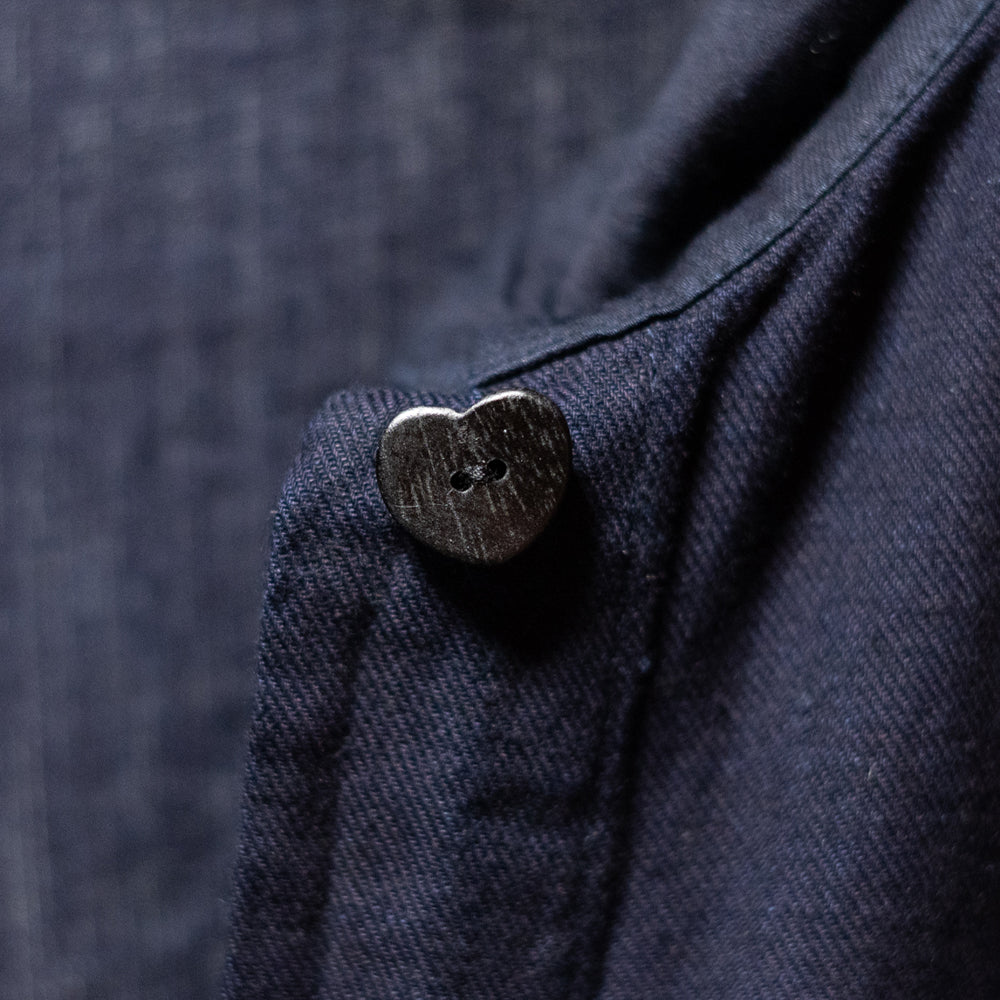 ココナッツ釦が、襟元だけハートの形に形成されてるのもさりげない隠れ技です。