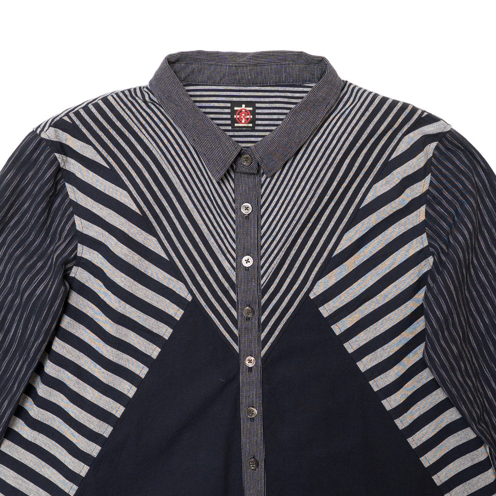 どこまでいっても、交わらない吉祥柄の直線を遊ぶように組み合わせて、ジオメトリック柄を作りました。