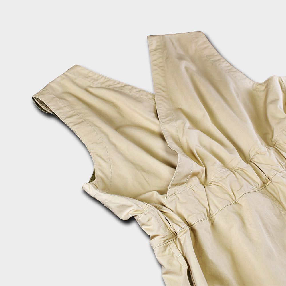 この主衣のオールインワンは前身ごろがVライン、後身ごろはカシュクールの様に左右の生地が重なってクロスするデザインに。