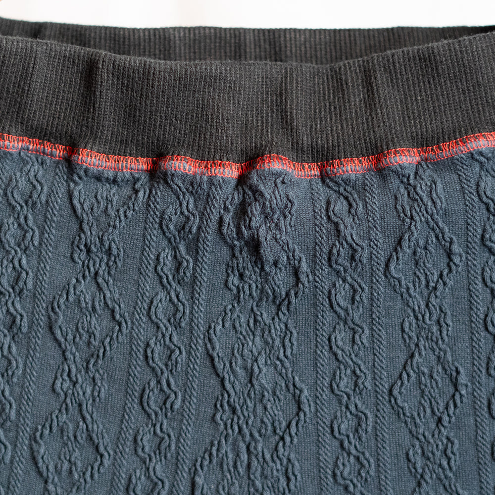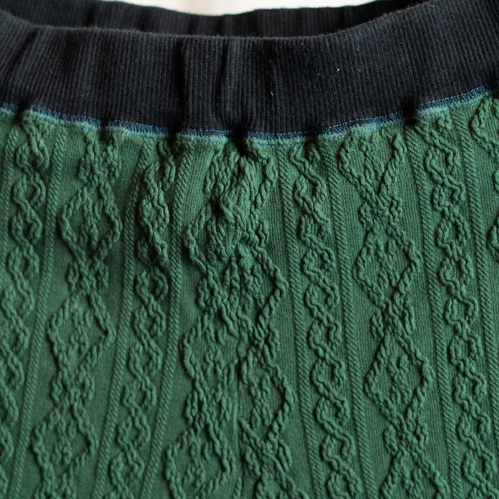 今回のレギンスはトレリスと呼ばれる、格子模様を中心に編んでみました。