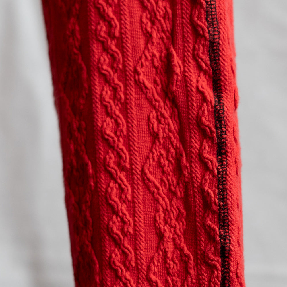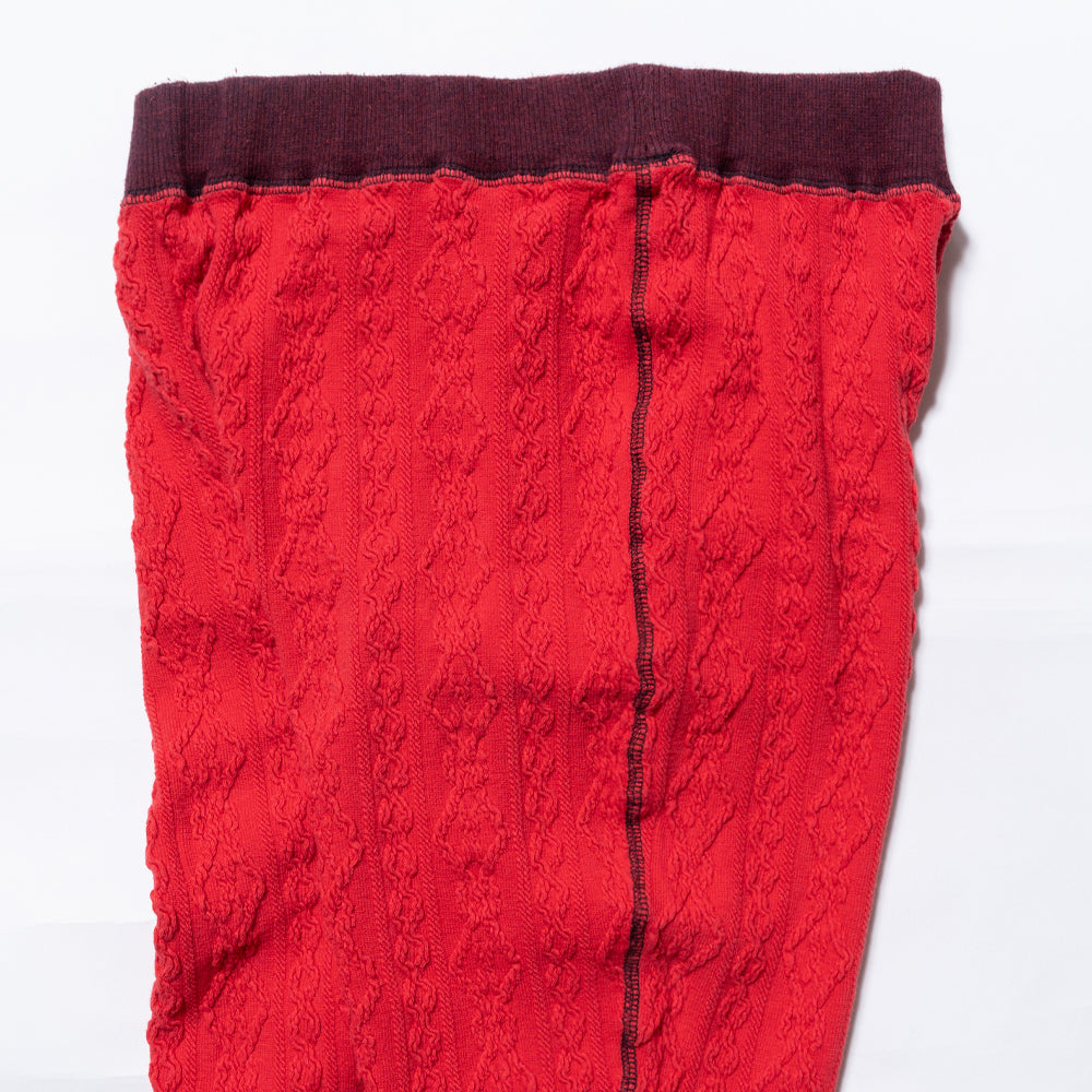 模様が凸凹している上に、とても収縮して肌に沿ってくれるため、暖かく可愛い足元が出来上がります。