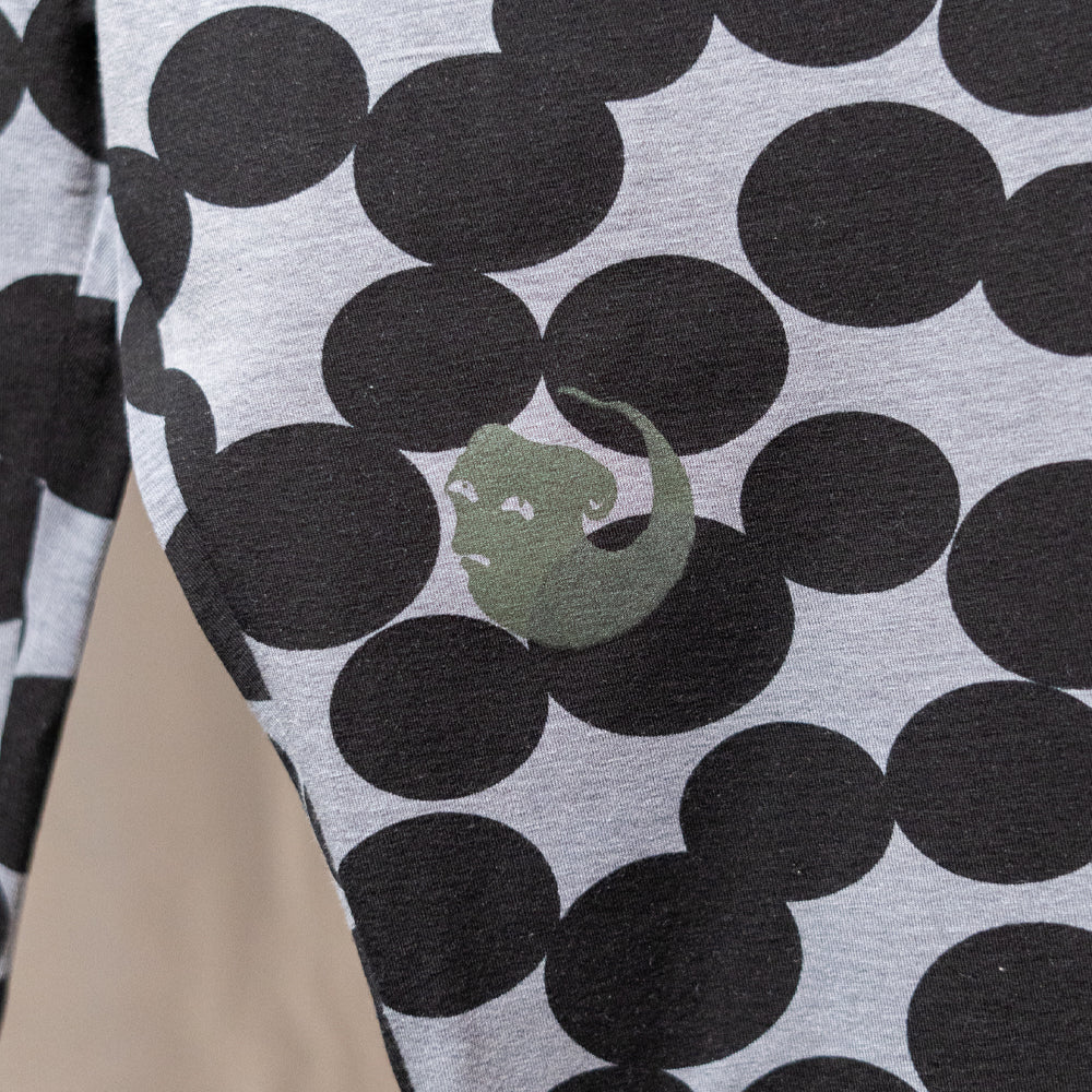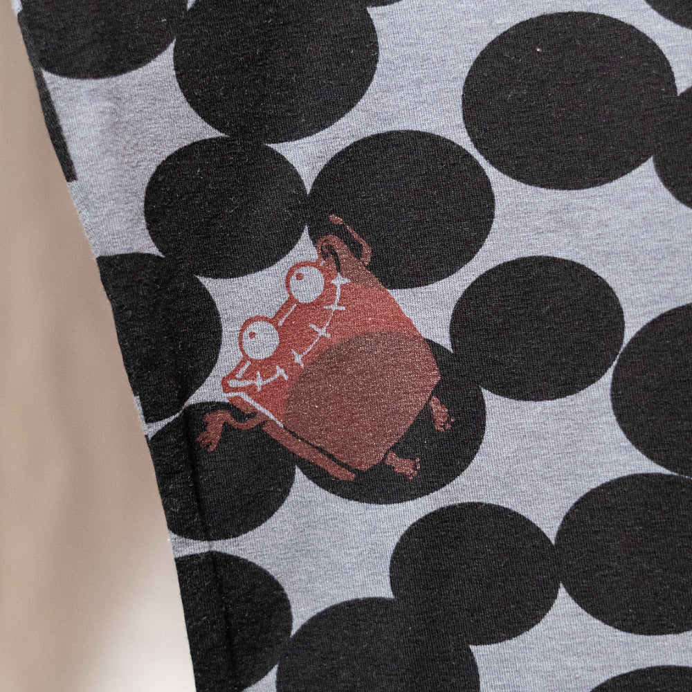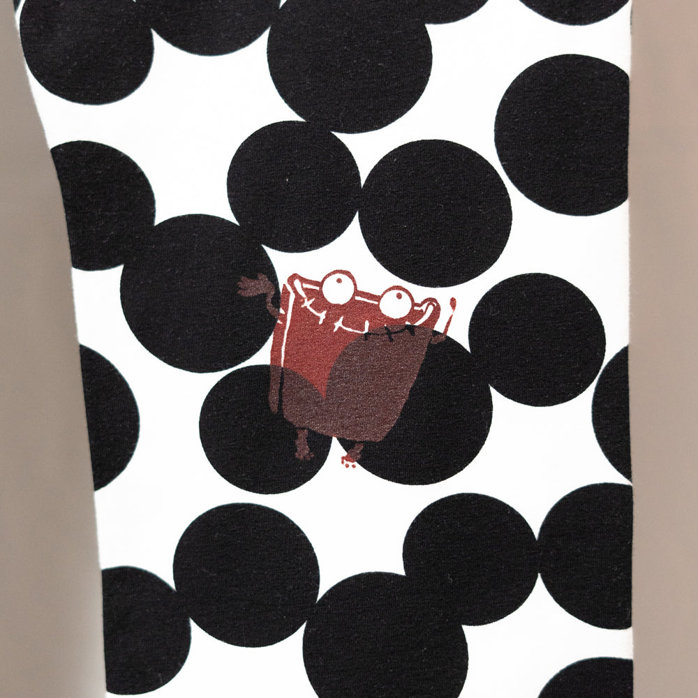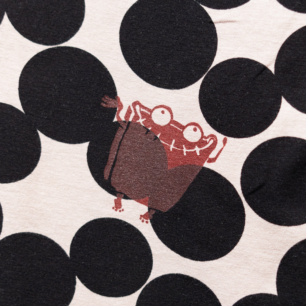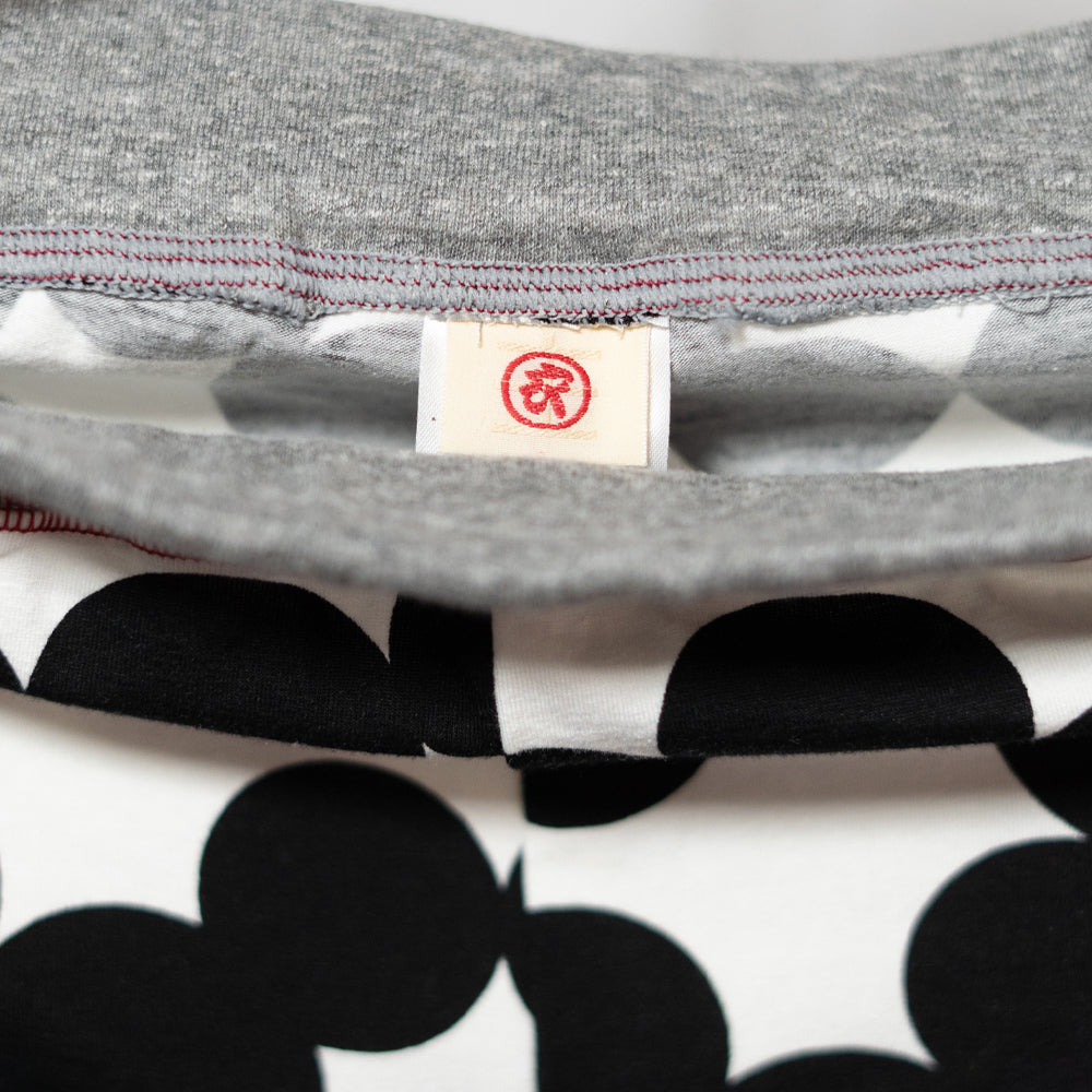 と言われるほど永遠の定番でもあり、ミニ-マウスのスカートにも採用されていて、空間に散らばる丸のバランスには見事なものを感じます。