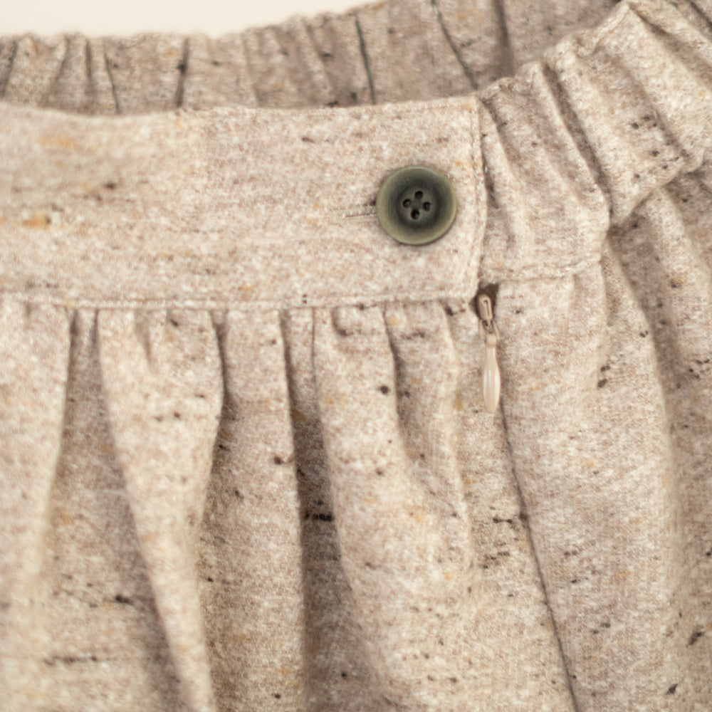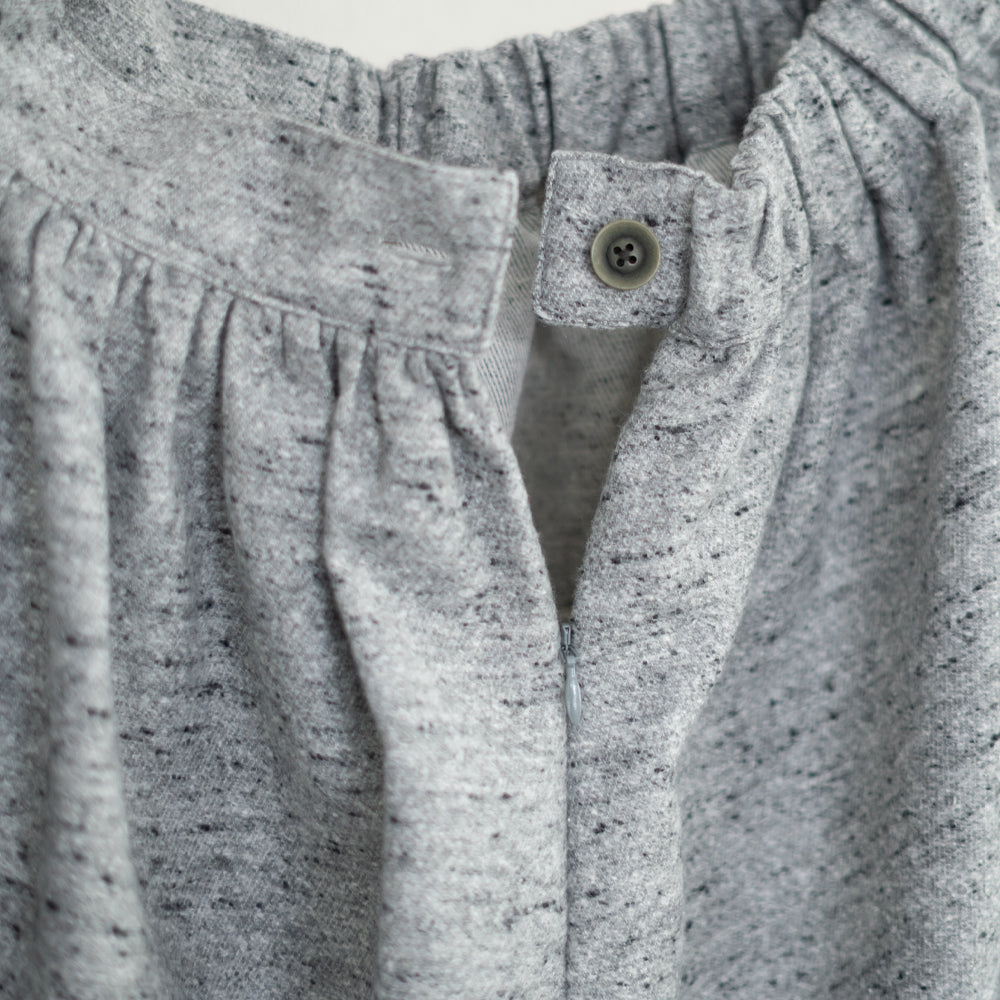 表面に糸の塊が、ポツポツ不規則な模様のようにあり、ふわっと起毛してることで暖かな肌触りを感じる、この生地はジャズネップ生地と呼ばれています。