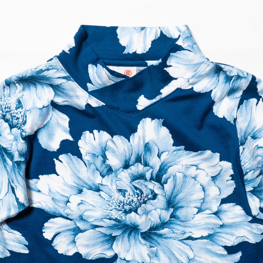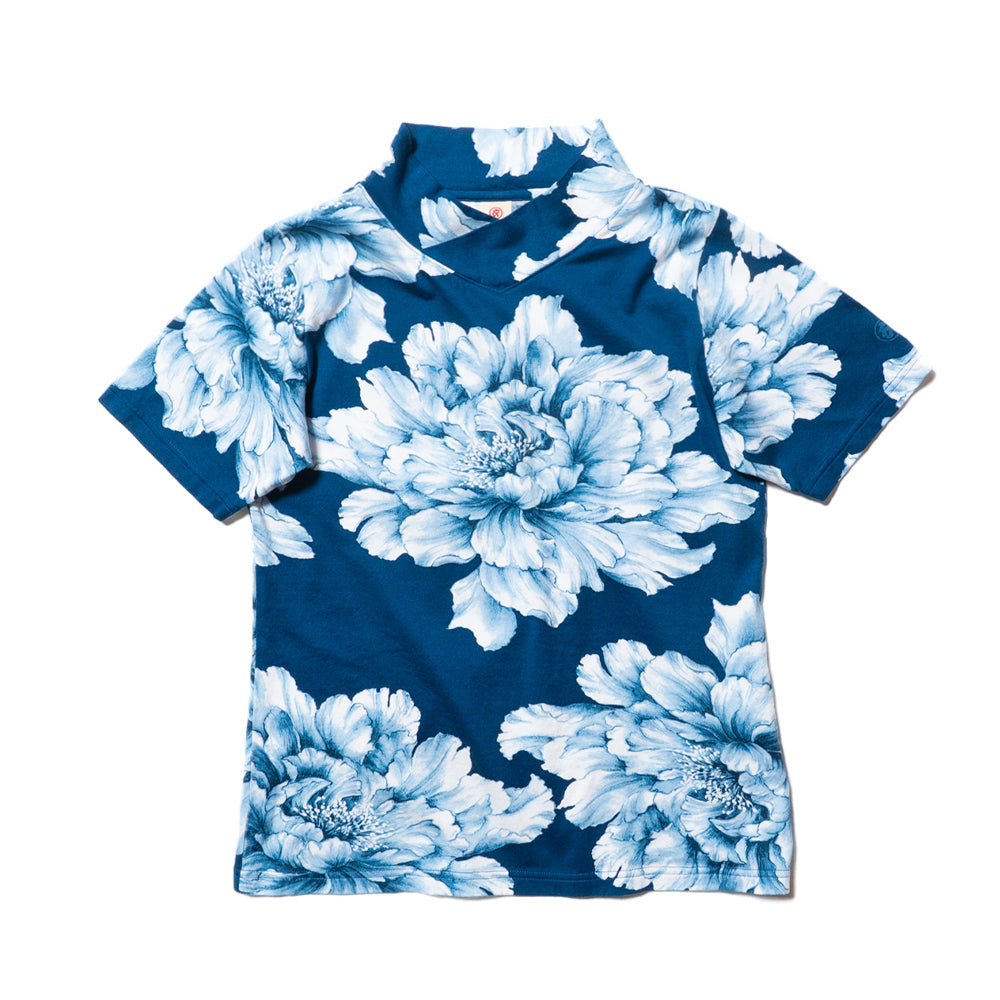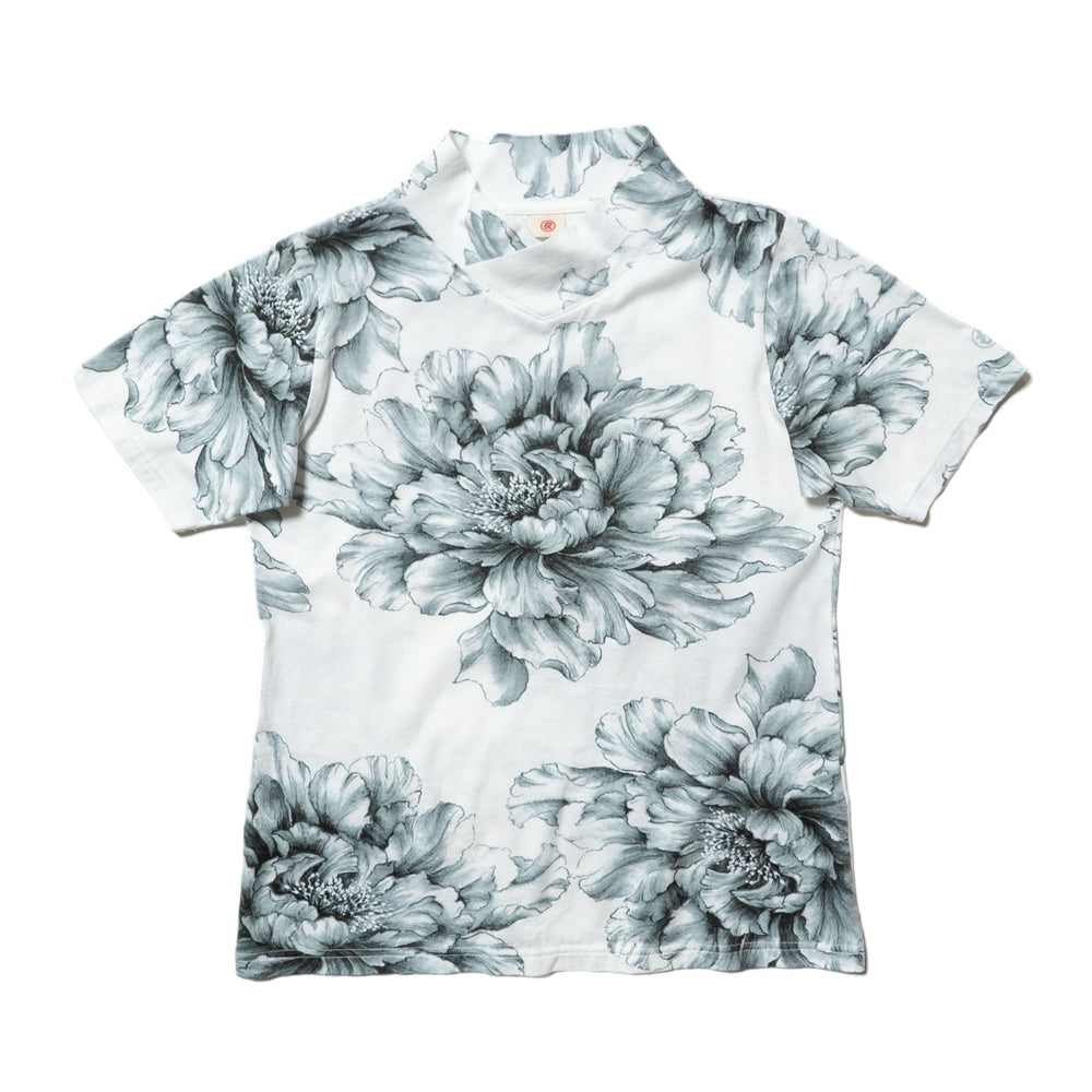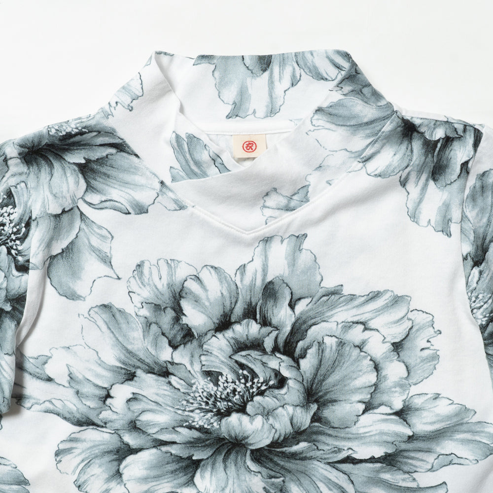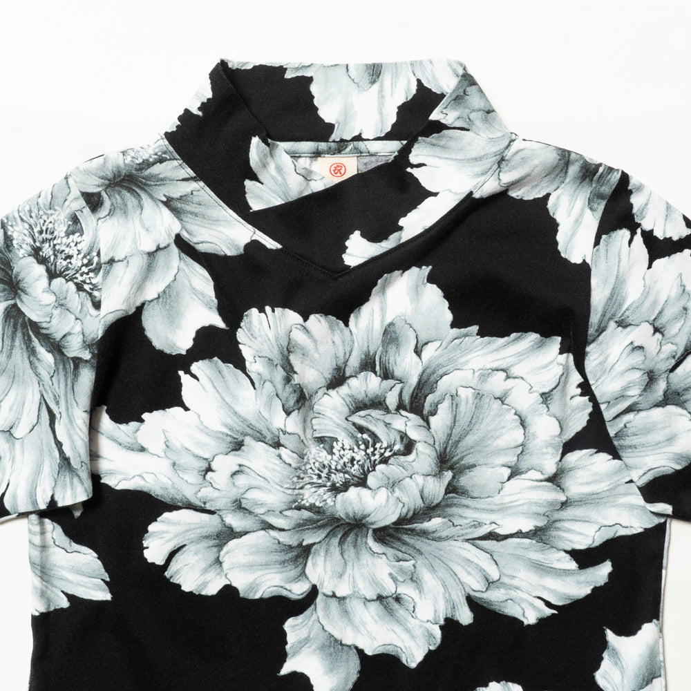 水墨牡丹慎まし着物衿半袖Tシャツ