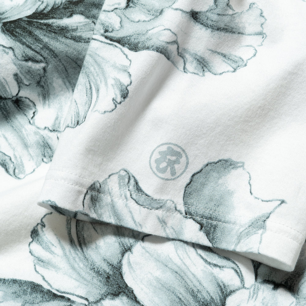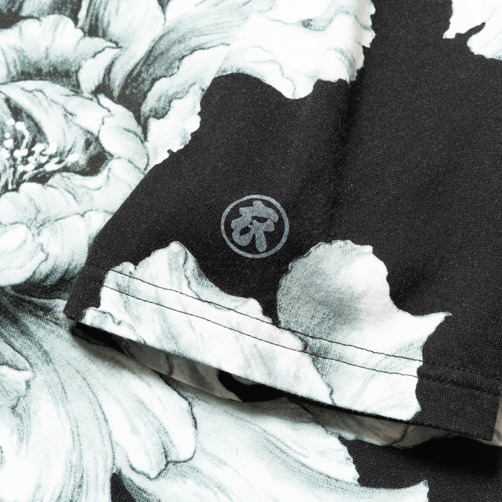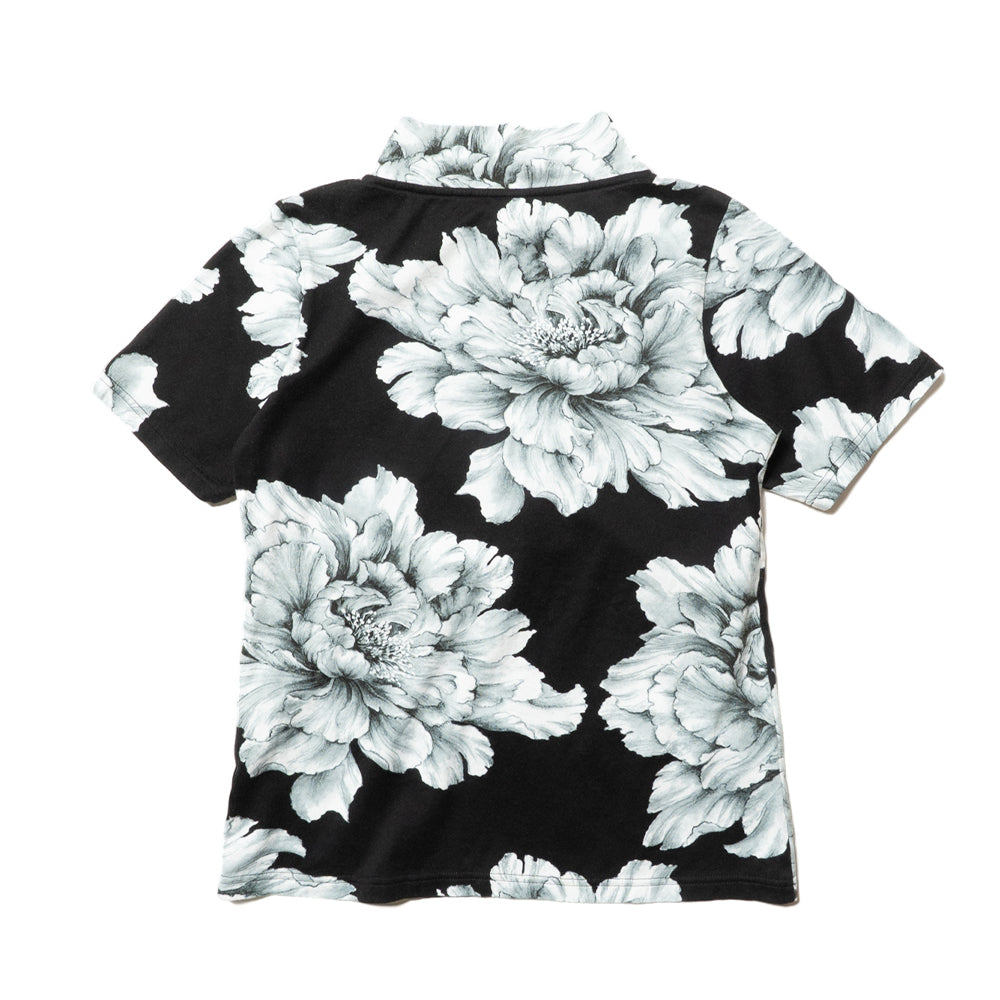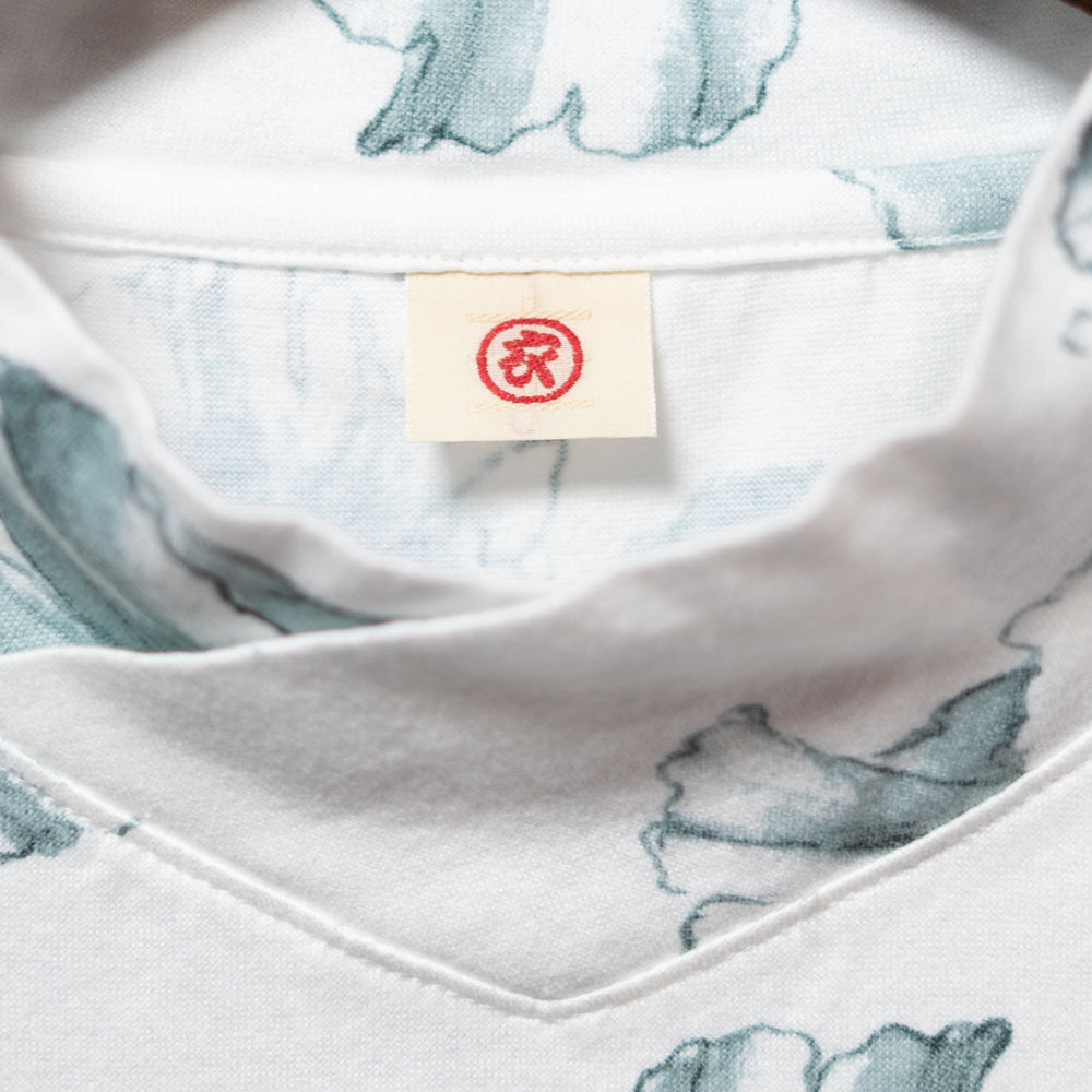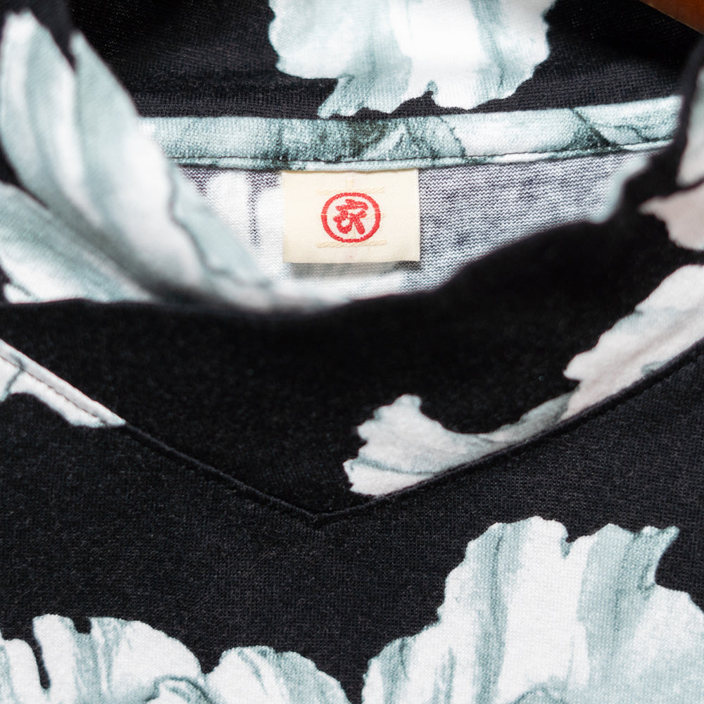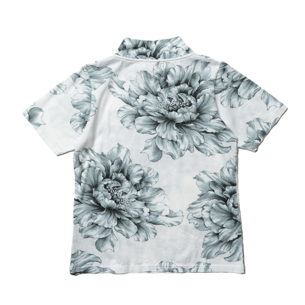 水墨牡丹慎まし着物衿半袖Tシャツ