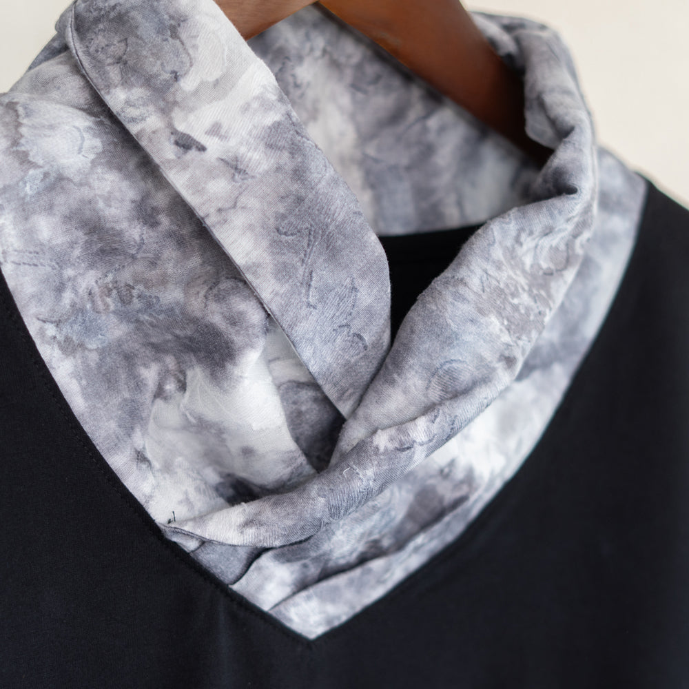 襟にちょっとおしゃれな、スカーフを纏っているように見えるTシャツです。