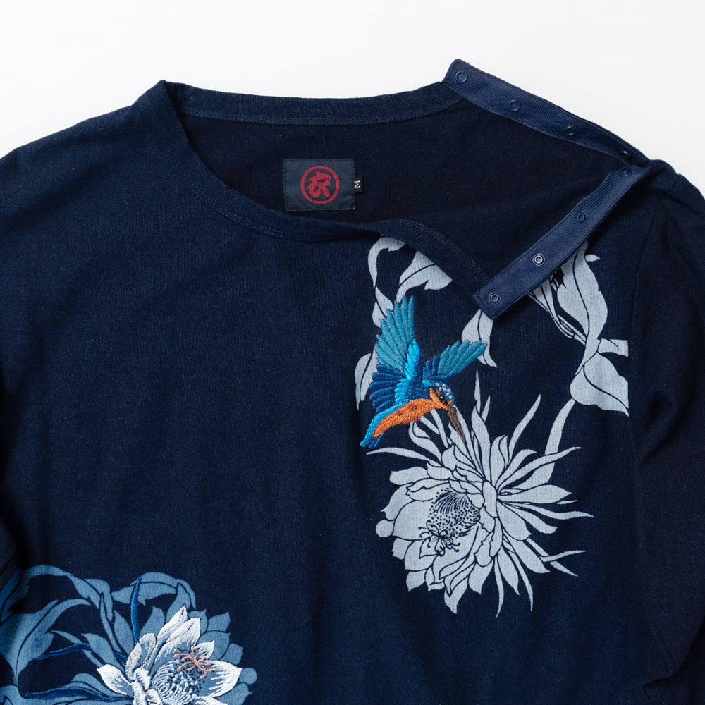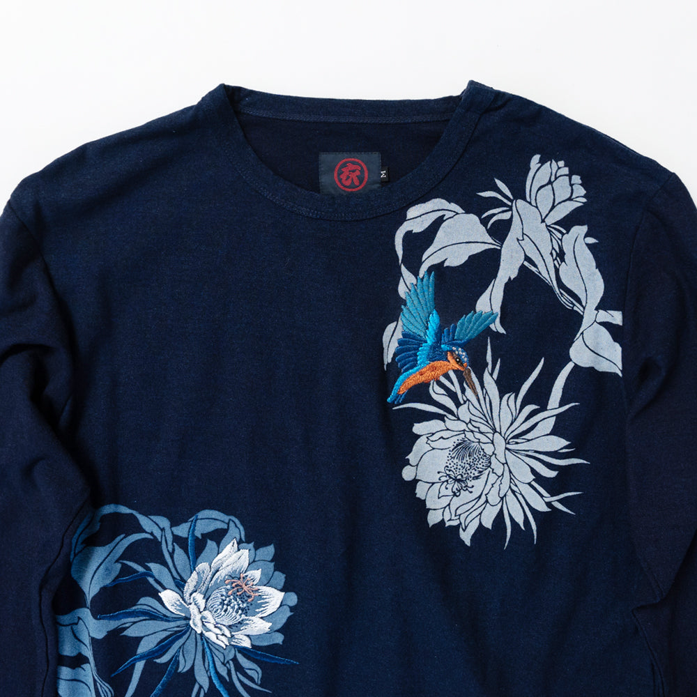 月下美人と翡翠(カワセミ) ロンT